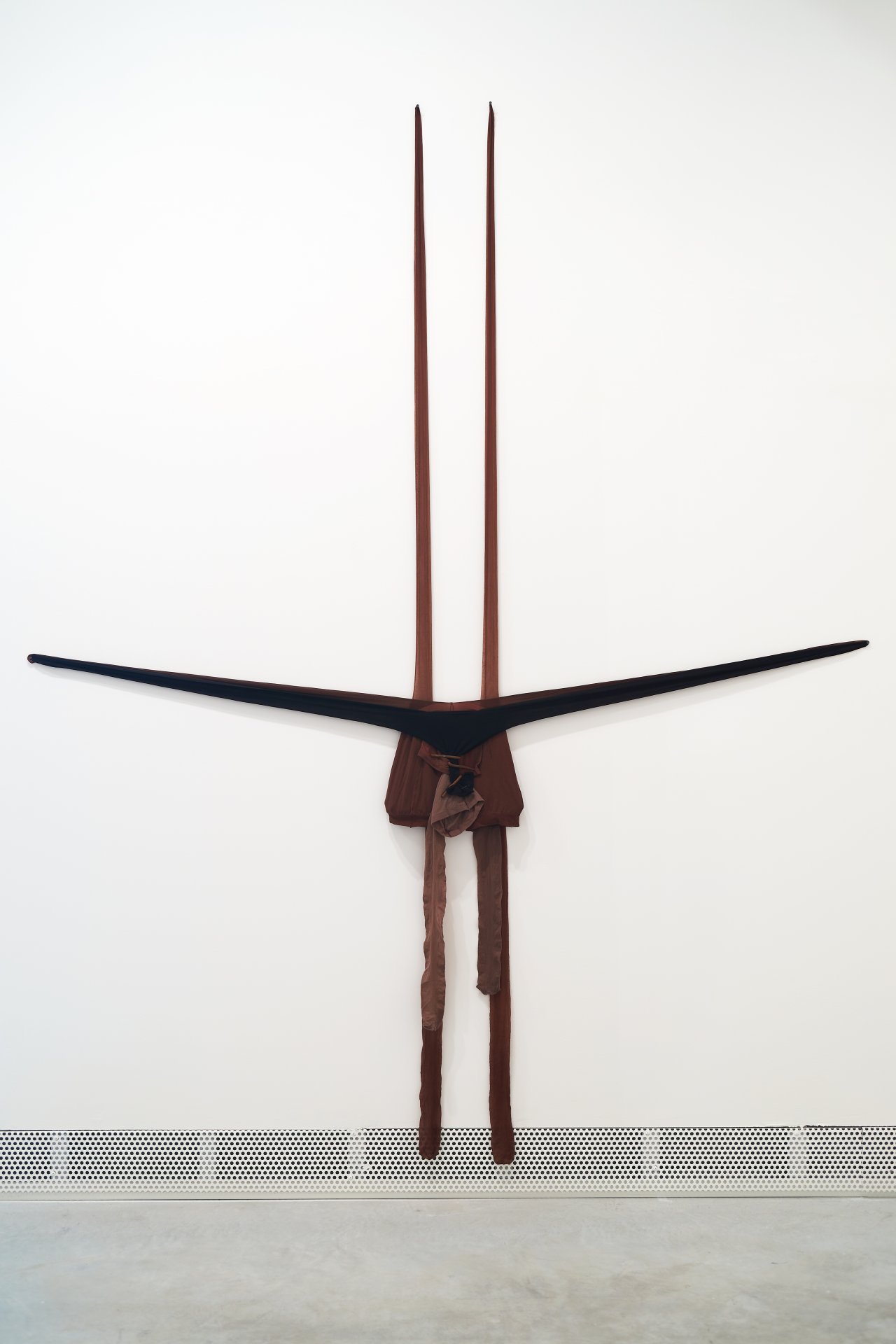 R.S.V.P. Reverie 'T', 2014. Nylon mesh, sand and copper, 116 × 22 × 5.5 in.">