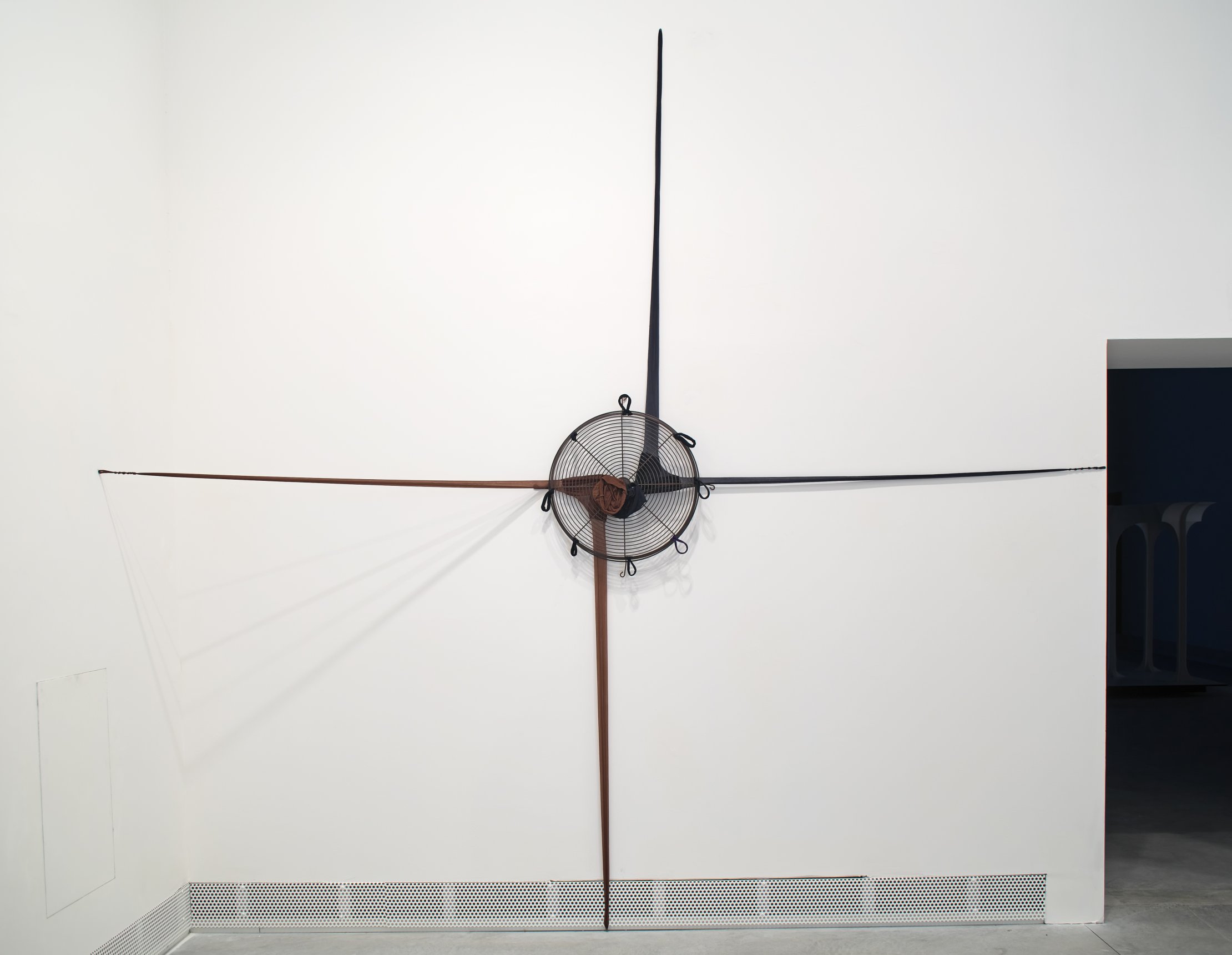 A.C.Q. (IV), 2016-17. Fan, nylon pantyhose, 132 × 96 in.(installation view Viva Arte Viva, Venice Biennale, 2017).">