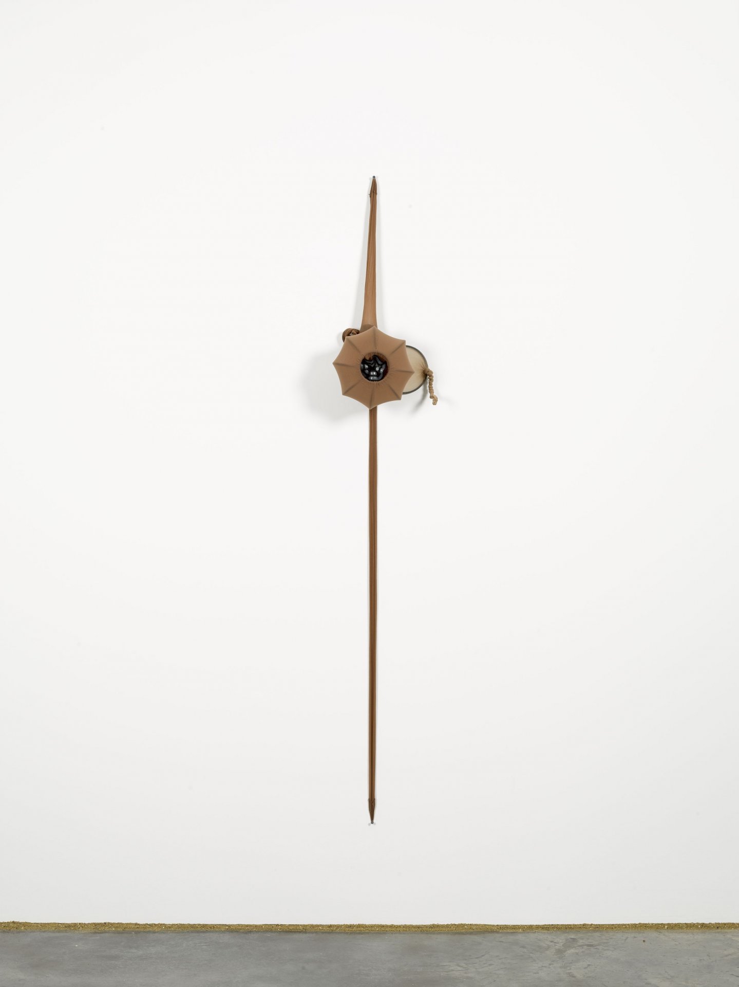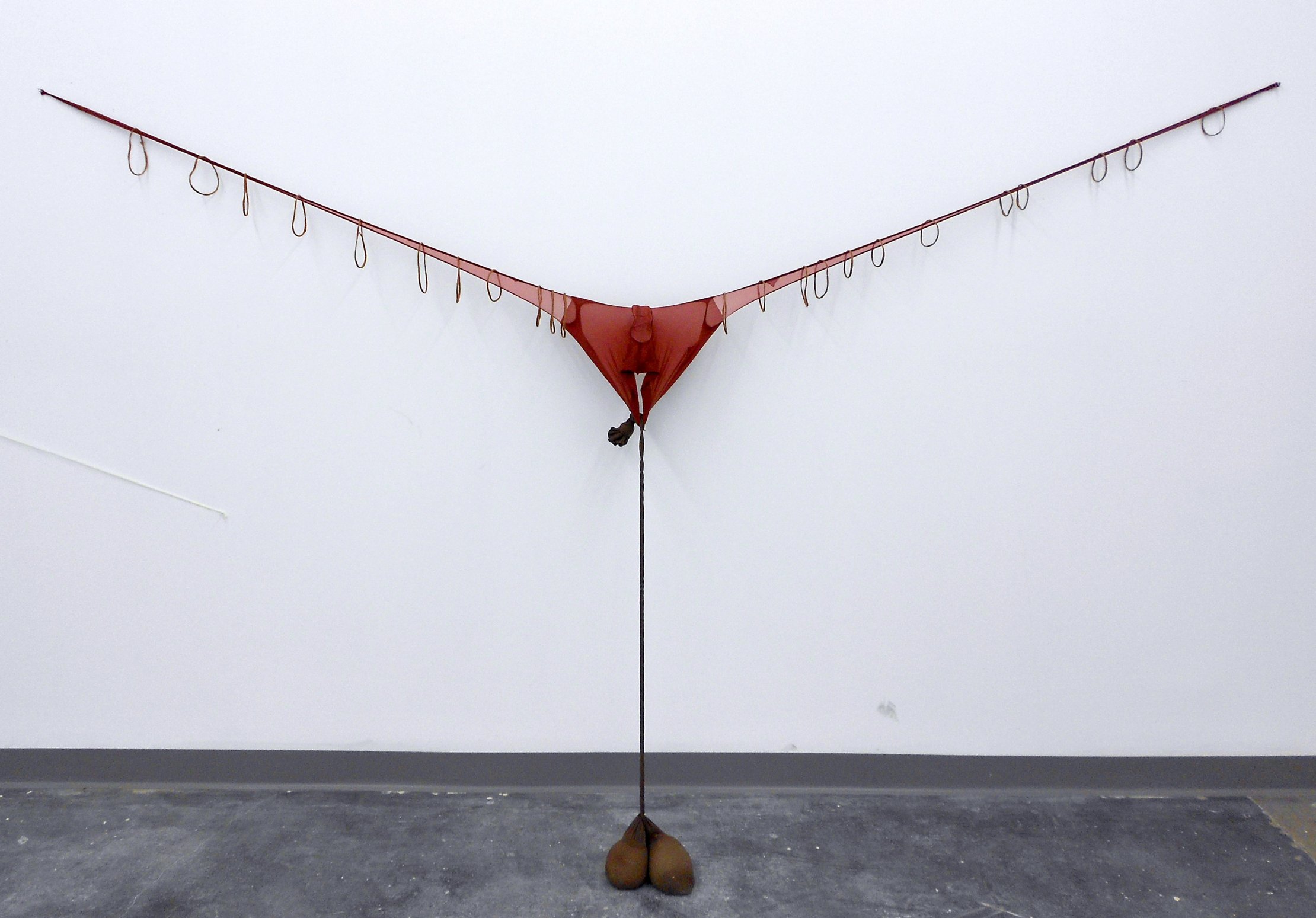 R.S.V.P. Reverie "P", 2011. Nylon mesh, sand and pole, 64.75 × 53 × 39.75 in. (collection of ICA, Boston).">