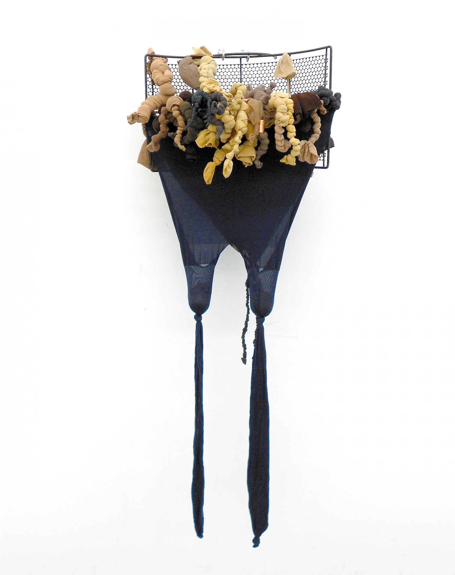 R.S.V.P. Reverie 'Embrace', 2014. Nylon mesh, sand and found metal, 14 × 7 × 7 in.">