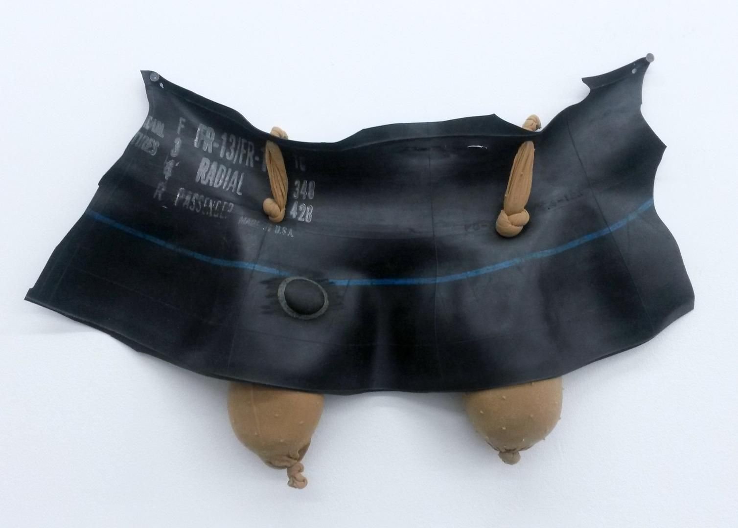 Rubber Maid, 2011. Inner tube tire, nylons, sand, 14 × 22 × 3 in.