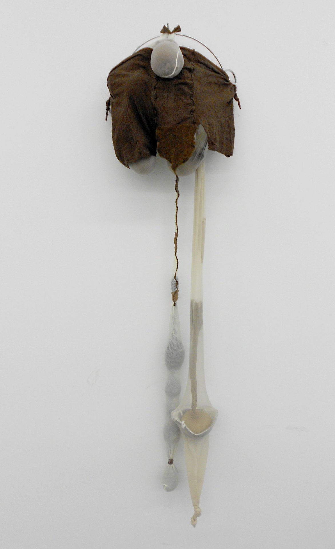 R.S.V.P. Reverie "A", 2011. Nylon mesh, sand, found wire object, 54 × 25 × 8 in.">