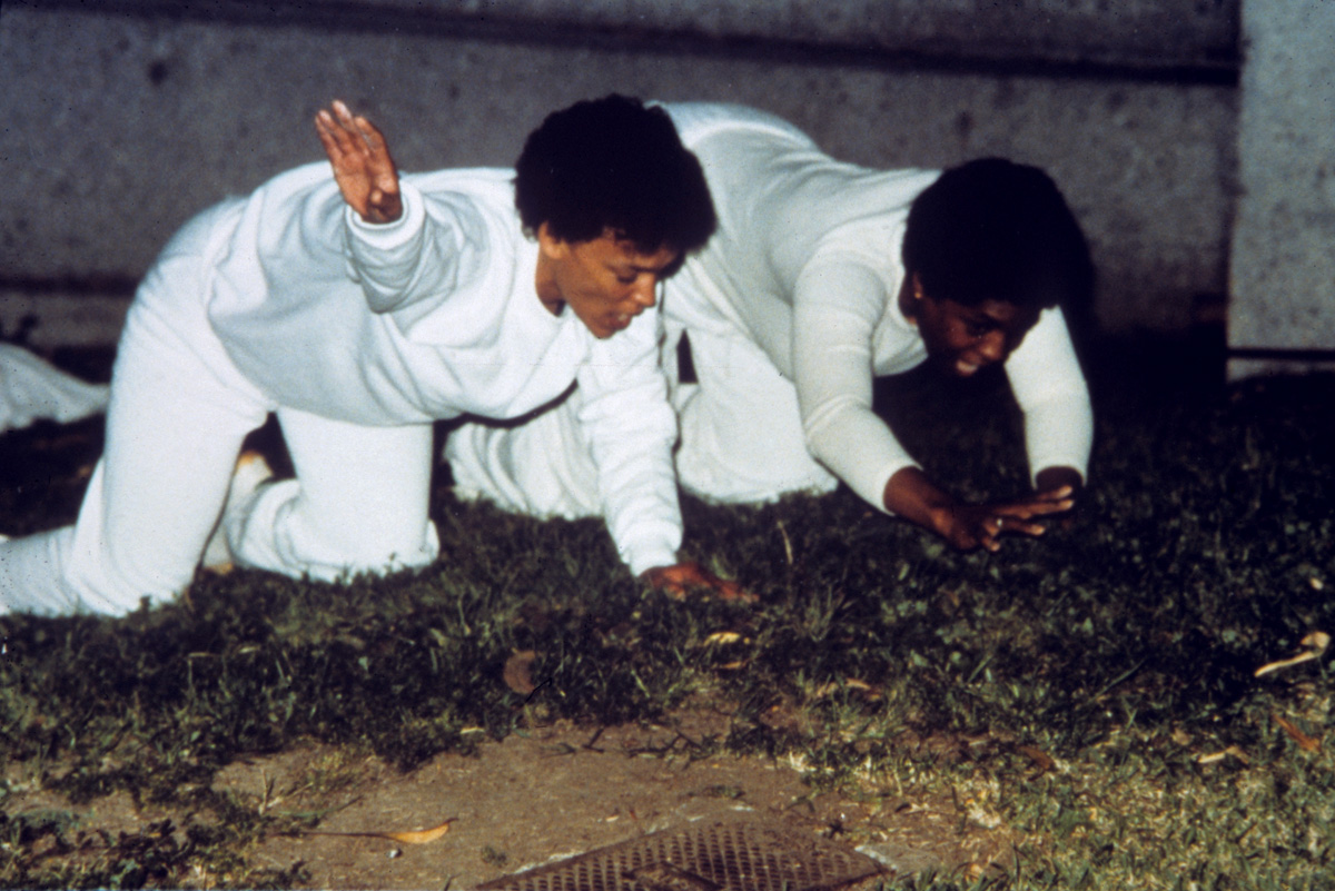 Performance Photographs - <i data-src=Performance Piece, 1978. Silver gelatin print, triptych, 31.5 x 40 in each, edition of 5 (+1 AP). Nylon Mesh, Senga Nengudi, Maren Hassinger Pearl C. Woods Gallery, Los Angeles Photo: Harmon Outlaw">