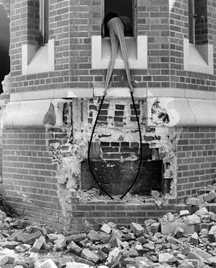 Performance Photographs - <i data-src=Rapunzel, 1981. Silver gelatin print, 40 x 30 in, edition of 5 (+1 AP). Nylon mesh, human hair on wire Arlington Avenue and Pico Boulevard, Los Angeles Photo: Barbara McCullough">
