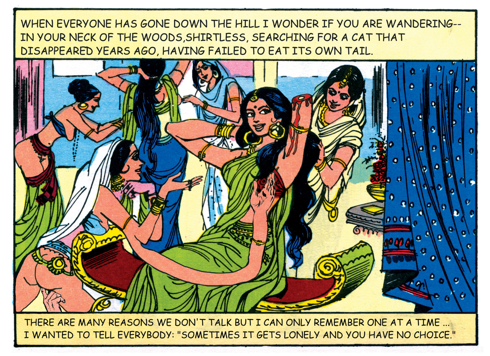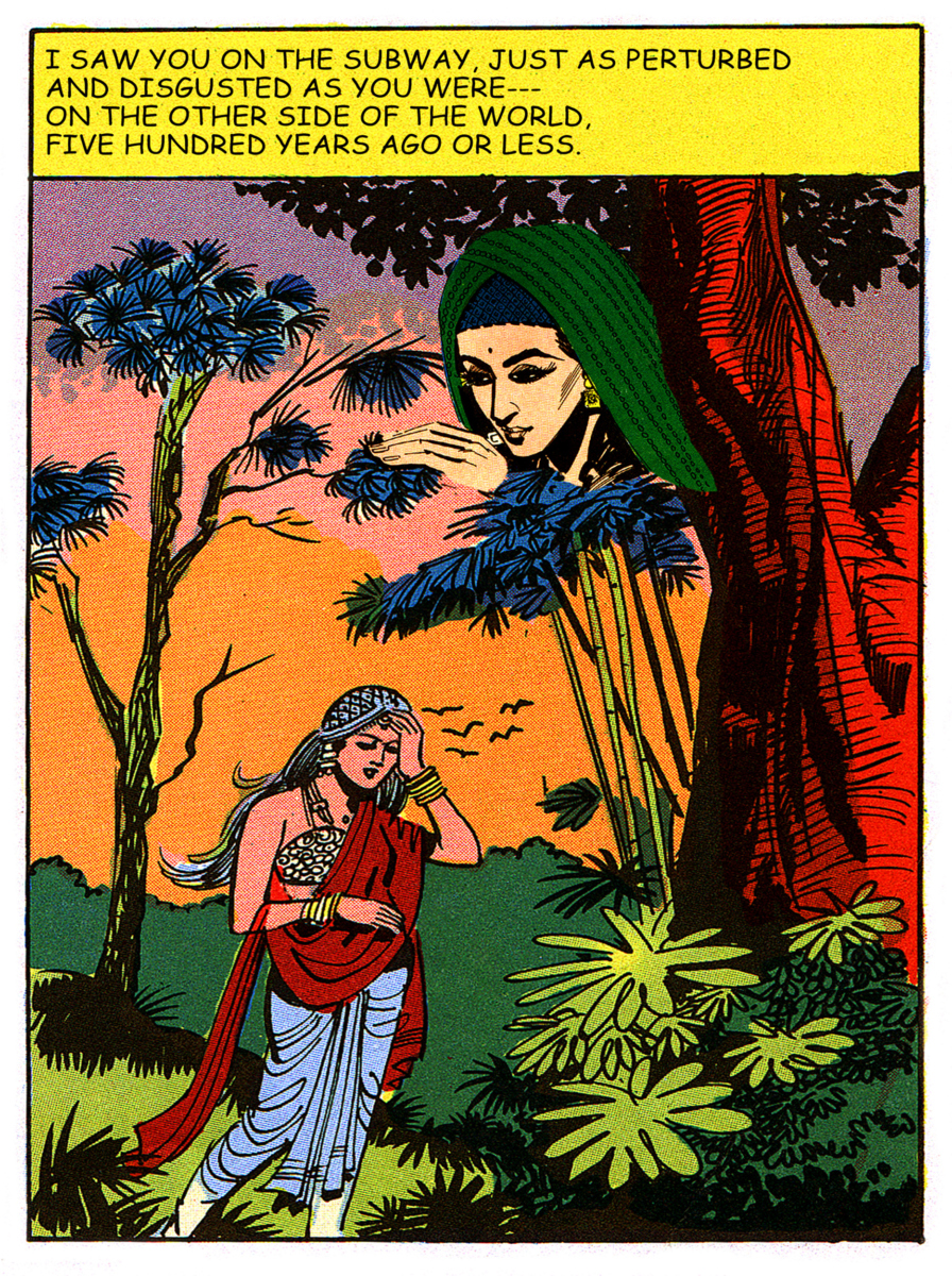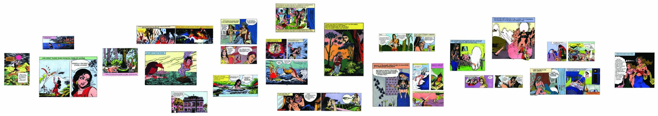 Before information became ubiquitously available on the internet and easily shared on social media, the complexity and multiplicity of the pantheon of Hindu gods, saints and mortals, as well as their innumerable travails and adventures, was illustrated and made accessible to young readers through Amar Chitra Katha comic books. Firmly and emotionally anchored in the Indian psyche, Ganesh smuggles in expressions of female desire by altering these iconic images and employing the means of collage. Please note the exquisitely punchy, often explicit language of the speech in Ganesh's retelling, with its intermingling of the profane and the sacred, the mythological and the philosophical. Ganesh studied Art-Semiotics and Comparative Literature at Brown University, where she received her BA magna cum laude, before attending Columbia University for her MFA. Conceived as a zine in 2002, which at the time was available at Printed Matter, the gallery published Tales of Amnesia as a 21 panel series of C-prints in 2007.">