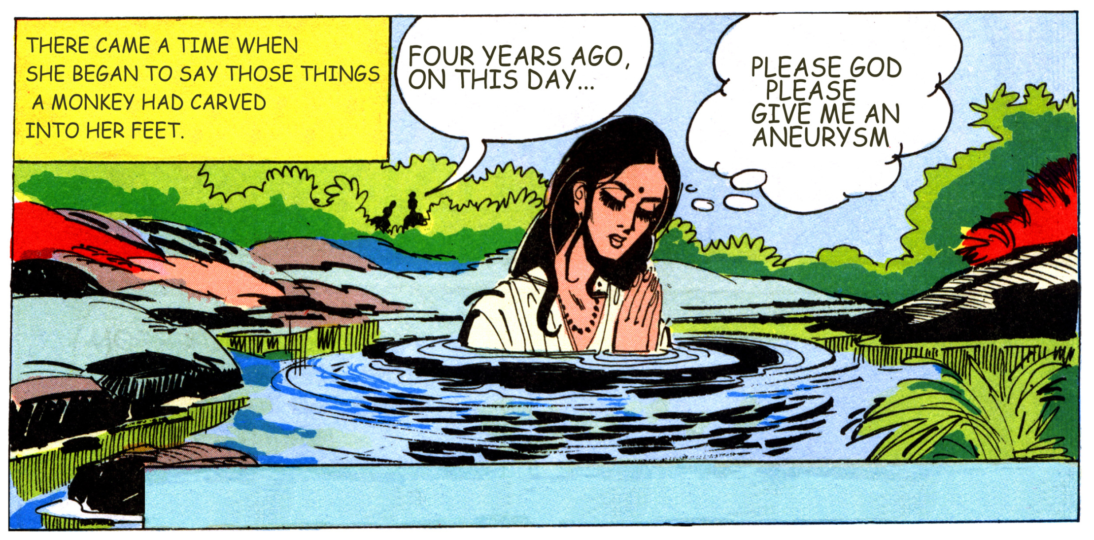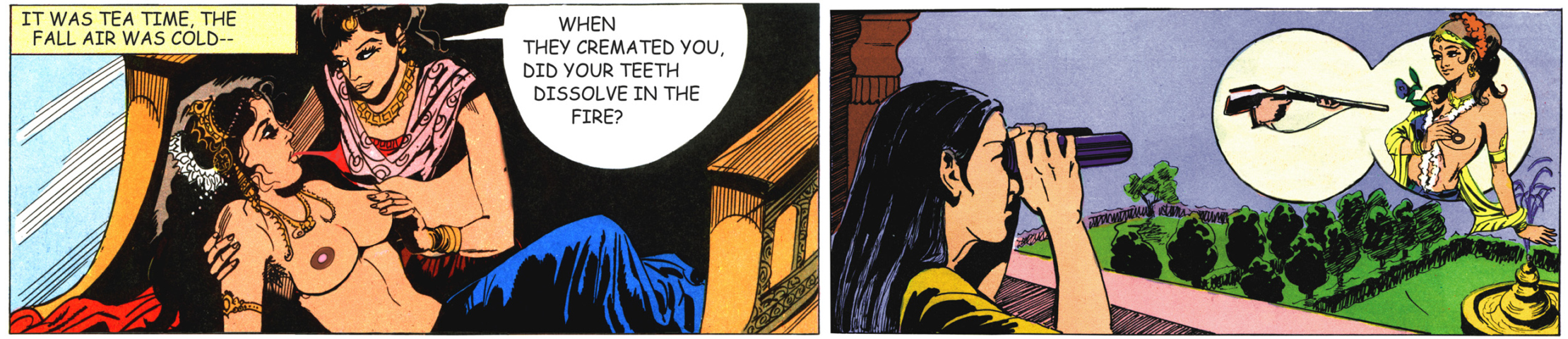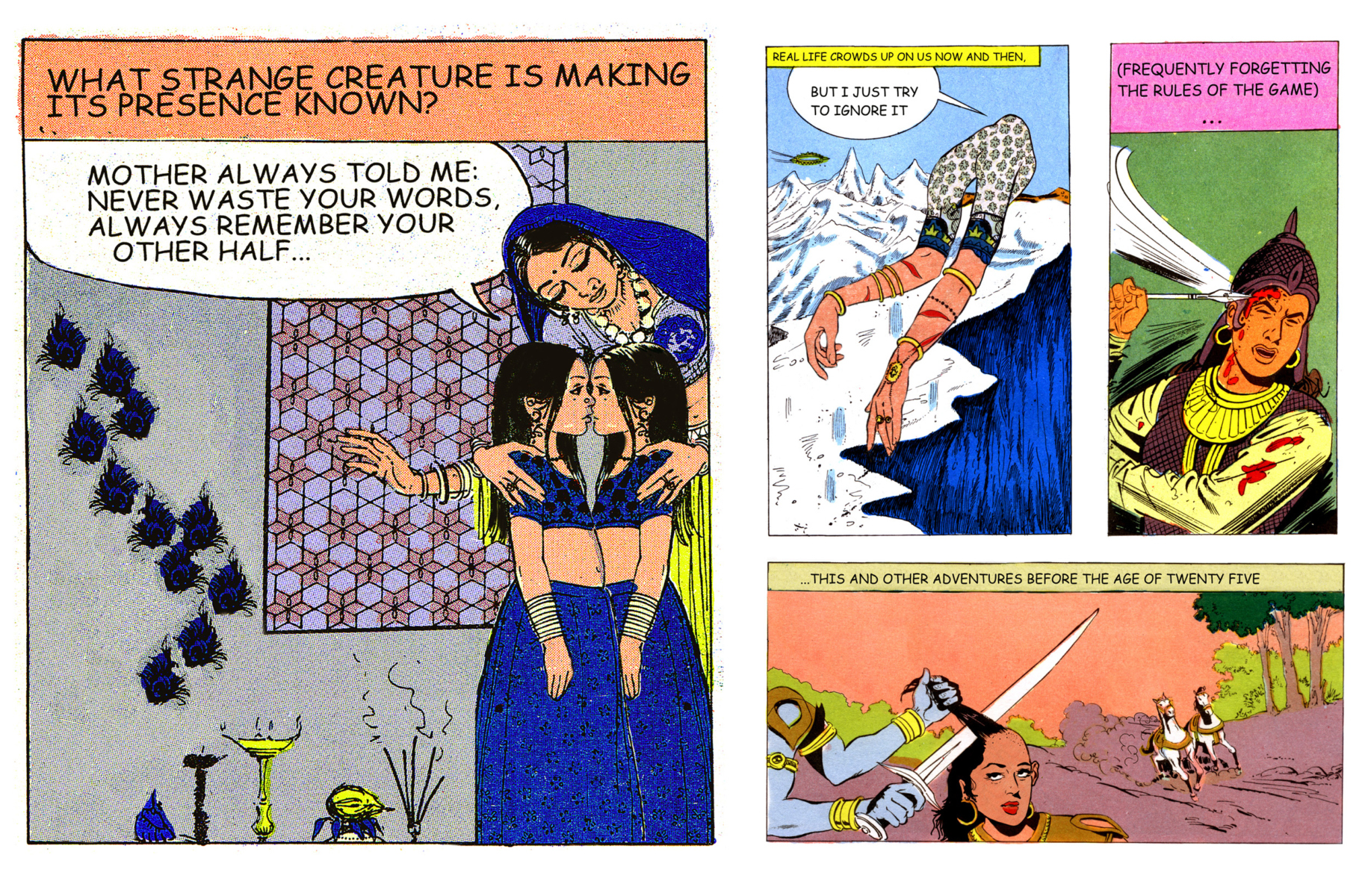 Before information became ubiquitously available on the internet and easily shared on social media, the complexity and multiplicity of the pantheon of Hindu gods, saints and mortals, as well as their innumerable travails and adventures, was illustrated and made accessible to young readers through Amar Chitra Katha comic books. Firmly and emotionally anchored in the Indian psyche, Ganesh smuggles in expressions of female desire by altering these iconic images and employing the means of collage. Please note the exquisitely punchy, often explicit language of the speech in Ganesh's retelling, with its intermingling of the profane and the sacred, the mythological and the philosophical. Ganesh studied Art-Semiotics and Comparative Literature at Brown University, where she received her BA magna cum laude, before attending Columbia University for her MFA. Conceived as a zine in 2002, which at the time was available at Printed Matter, the gallery published Tales of Amnesia as a 21 panel series of C-prints in 2007.">