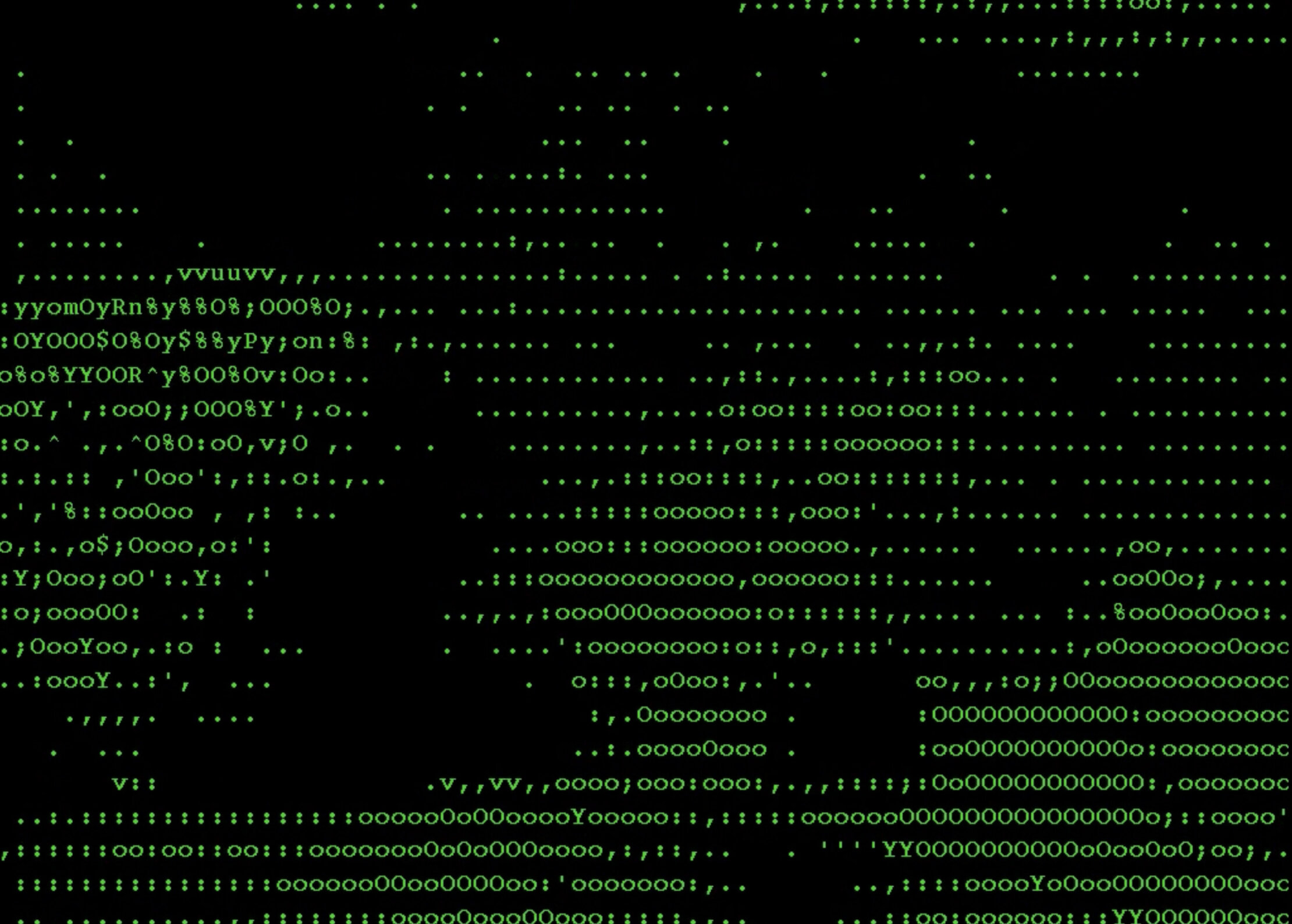 net.art pioneer Vuk Ćosić (b. 1966, Belgrade) reduces the 1972 film Deep Throat to bits of early encoding language, probing the limits of legibility. Yet, we are somehow able to “make out” its pornographic images as the film has so deeply entered our collective consciousness.