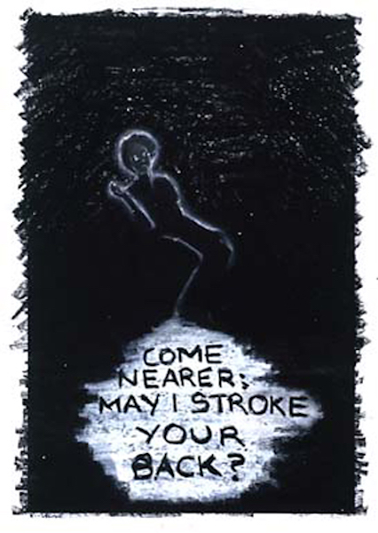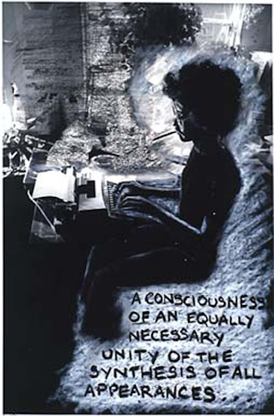 The other works in this show refer to the later independent life of The Being as he goes about his way as a young black man living a life parallel to Piper’s. At this time Piper was attending Harvard. So does The Being. Pieces include: The Mythic Being Cruising White Women; The Mythic Being Getting Back (a documentation of a mugging) as well as the character’s philosophical musings about Kant, friendship, and altruism.