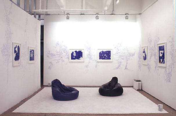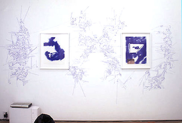 An audio-visual installation by Vargas-Suarez Universal will include works on paper, executed in blue ball-point pen, installed amongst room filling wall drawings. The artist recorded the sound of pen marking the surface of the paper, and digitally manipulated it creating an ambient-style electronic composition which will play during the exhibition. Bean bags will facilitate a relaxed experience. His work recently drew attention in a group show at Arena@Feed, Brooklyn, and will be included in S-Files, The Selected Files, El Museo del Barrio, NY, as well as the London Biennale 2000.