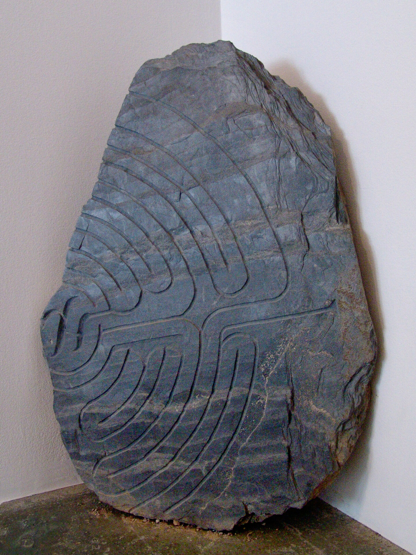 Tombstone for Borge's Assassinated Translator (Ahmad Miralaie), 2012. Engraving on stone, 32 x 23.5 x 2 in.">