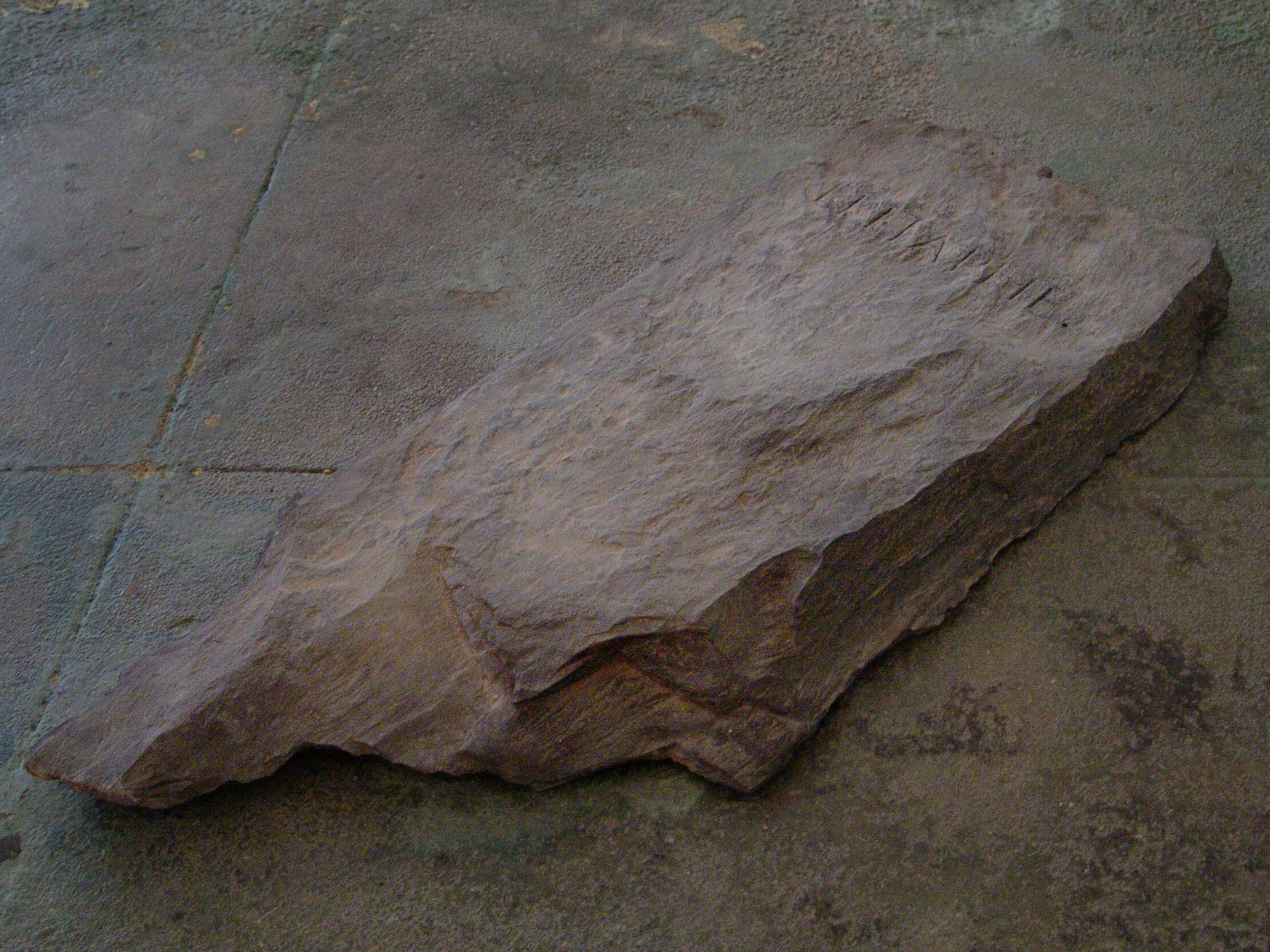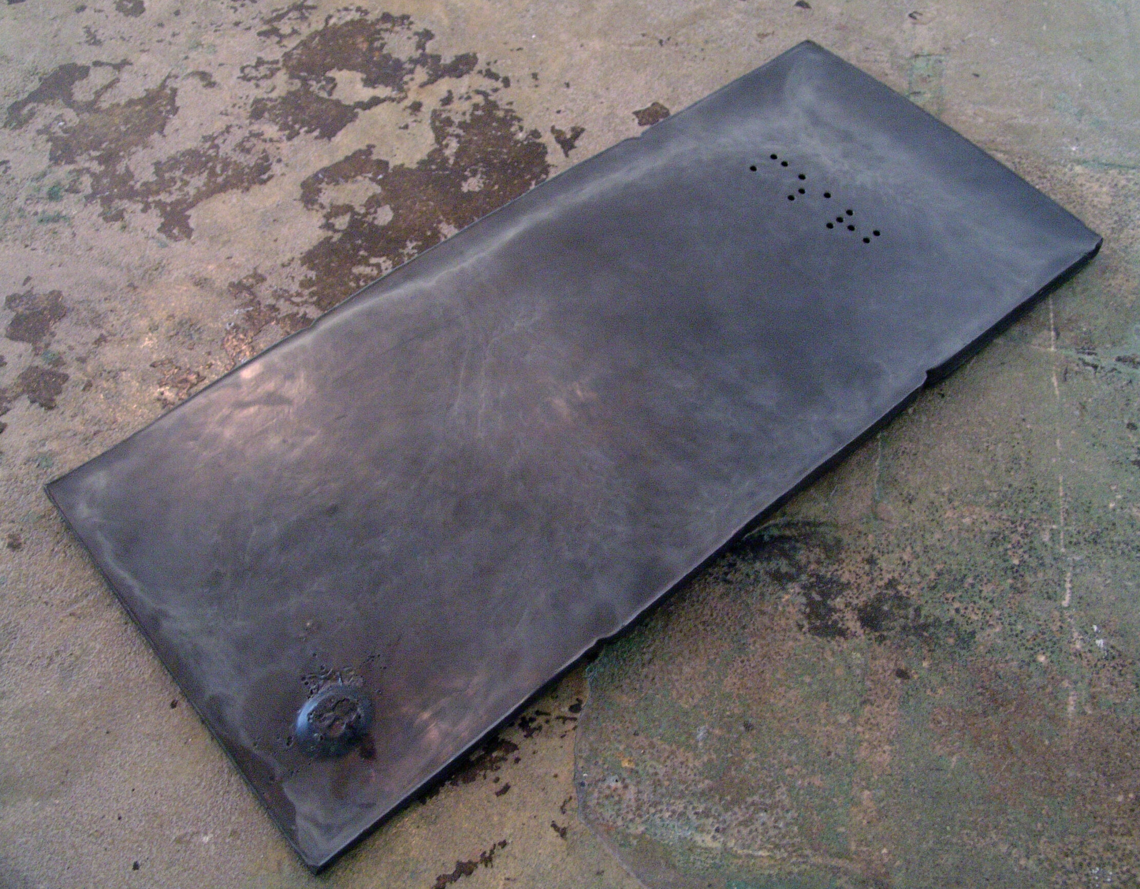 The Untitled Tomb, 2012. Iron, soot, 53 x 24 in. (stencil, imprint).">