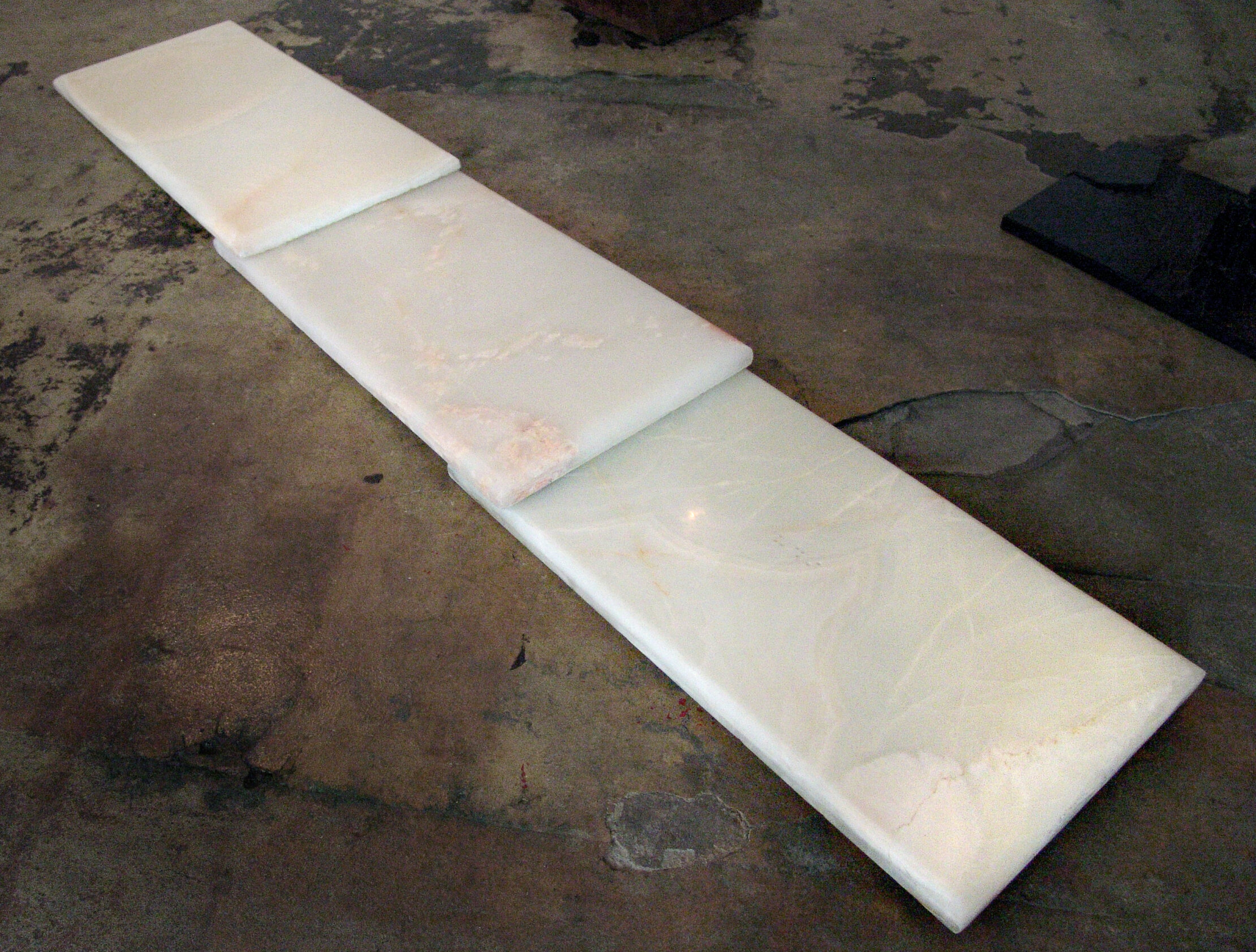 Death Sentence, 2011-2013. Engraving on marble, three pieces, 118.5 x 21.5 x 4 in..">