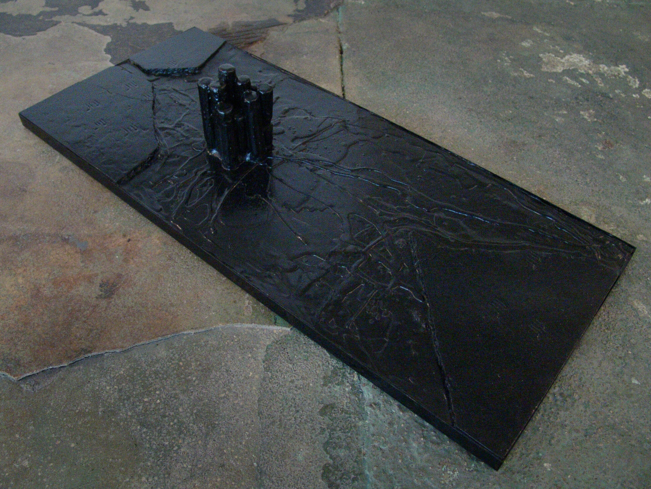 Pentimento, 2011. Iron, industrial wax, granite, paint, 43.5 x 20 x 8 in.">