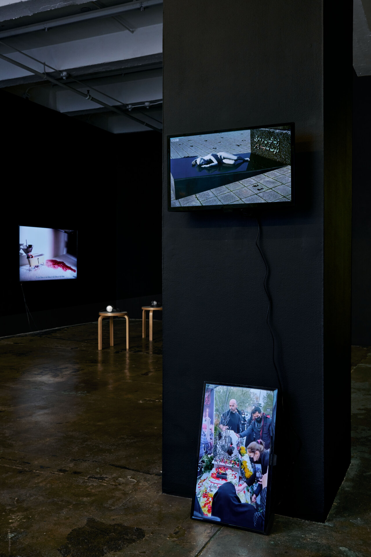 Barbad Golshiri (b. 1982, Tehran) is an Iranian artist, whose work addresses what one could summarily characterize as the “Politics of Death”. Through his highly inventive engagement with various media such as video, performance, photography, and sculpture, including traditional calligraphy and critical writing, Golshiri confronts totalitarian ideologies, be they sacral or profane. Examples of his ongoing Curriculum Mortis – an account of death rather than life – conceived as episodes dating from 2002 to 2022, will be on view at the gallery from February 23 until April 8. The exhibition resonates at this contemporary moment when the uprising, by now labeled the Woman, Life, Freedom revolution, has engulfed the artist’s native country and mesmerized the entire globe. As part of his artistic activism, Golshiri has been and still is creating gravestones and memorials for those killed during this revolution.