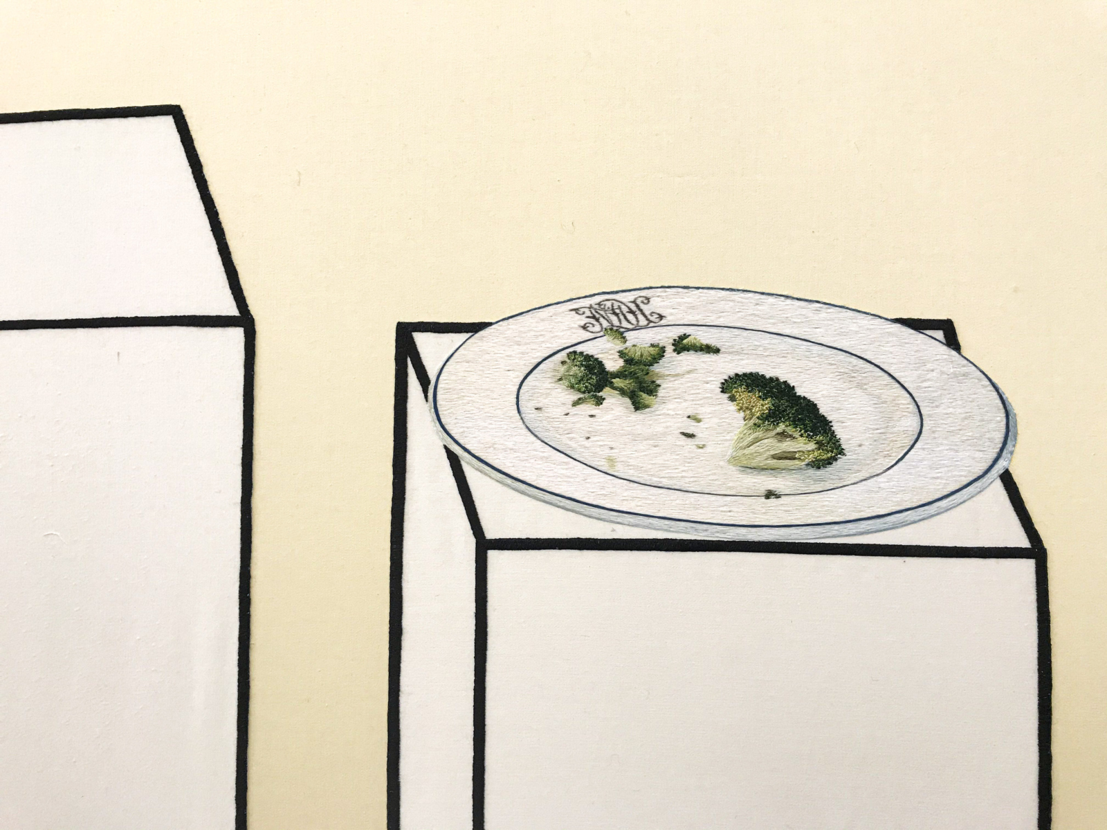 Embroidery on cotton, 54 5/8 x 77 1/2 in.