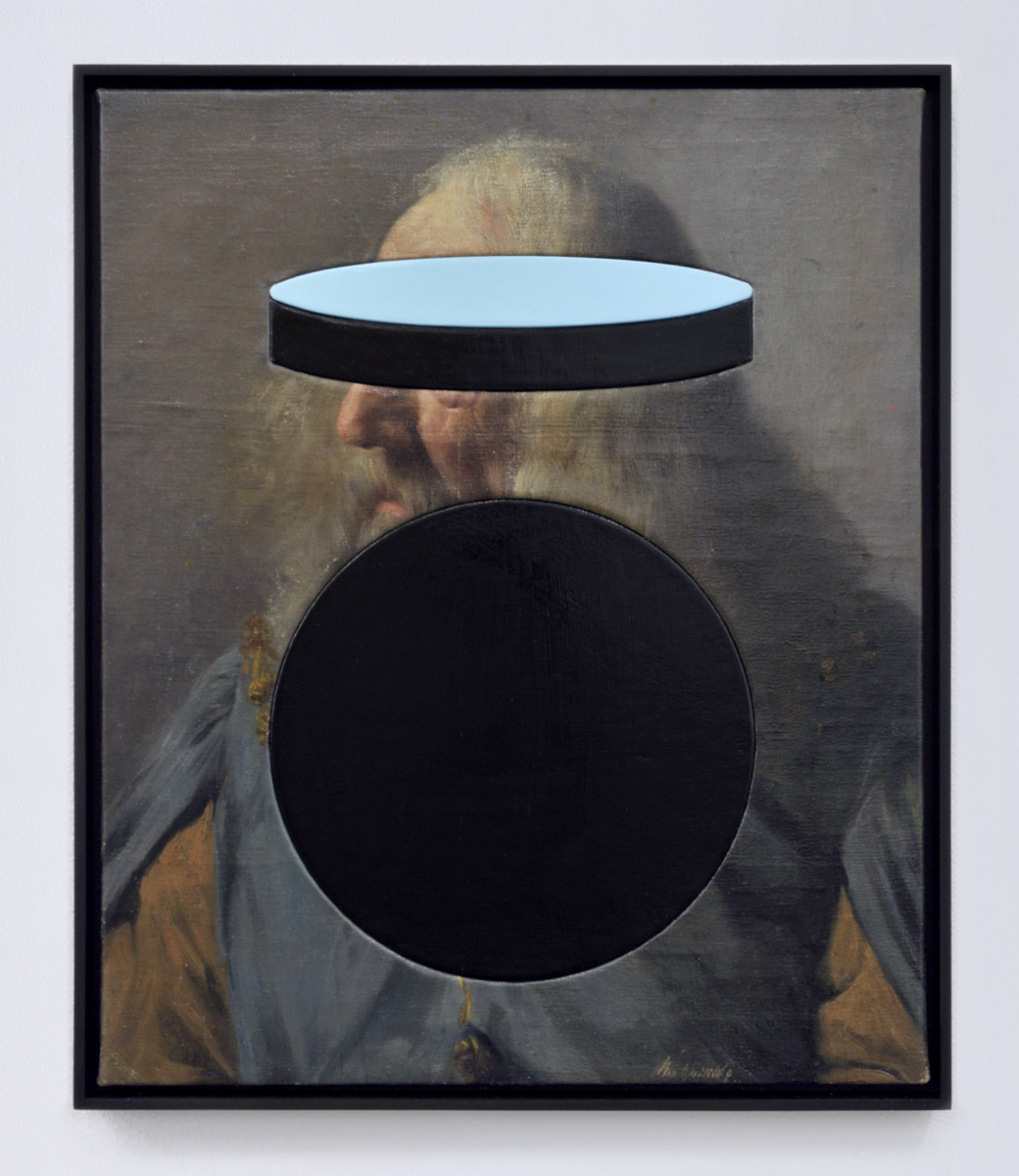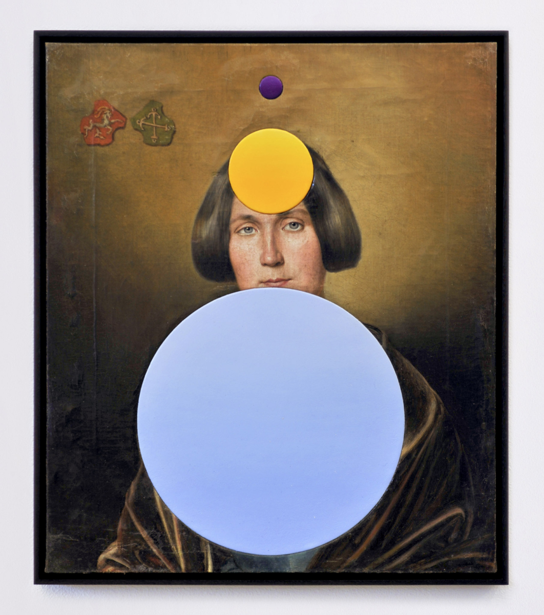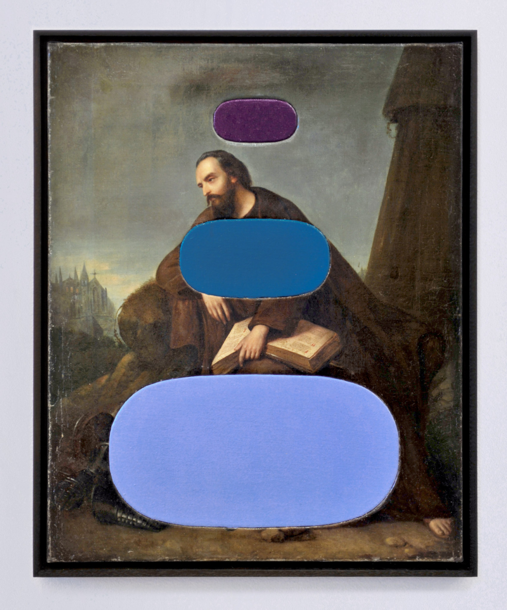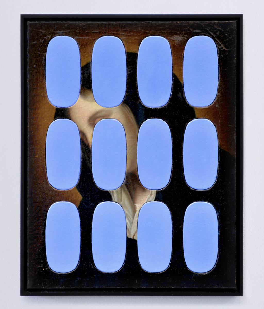 19th Century oil on canvas, mounted on masonite with inlays, 20 1/5 x 16 in.
