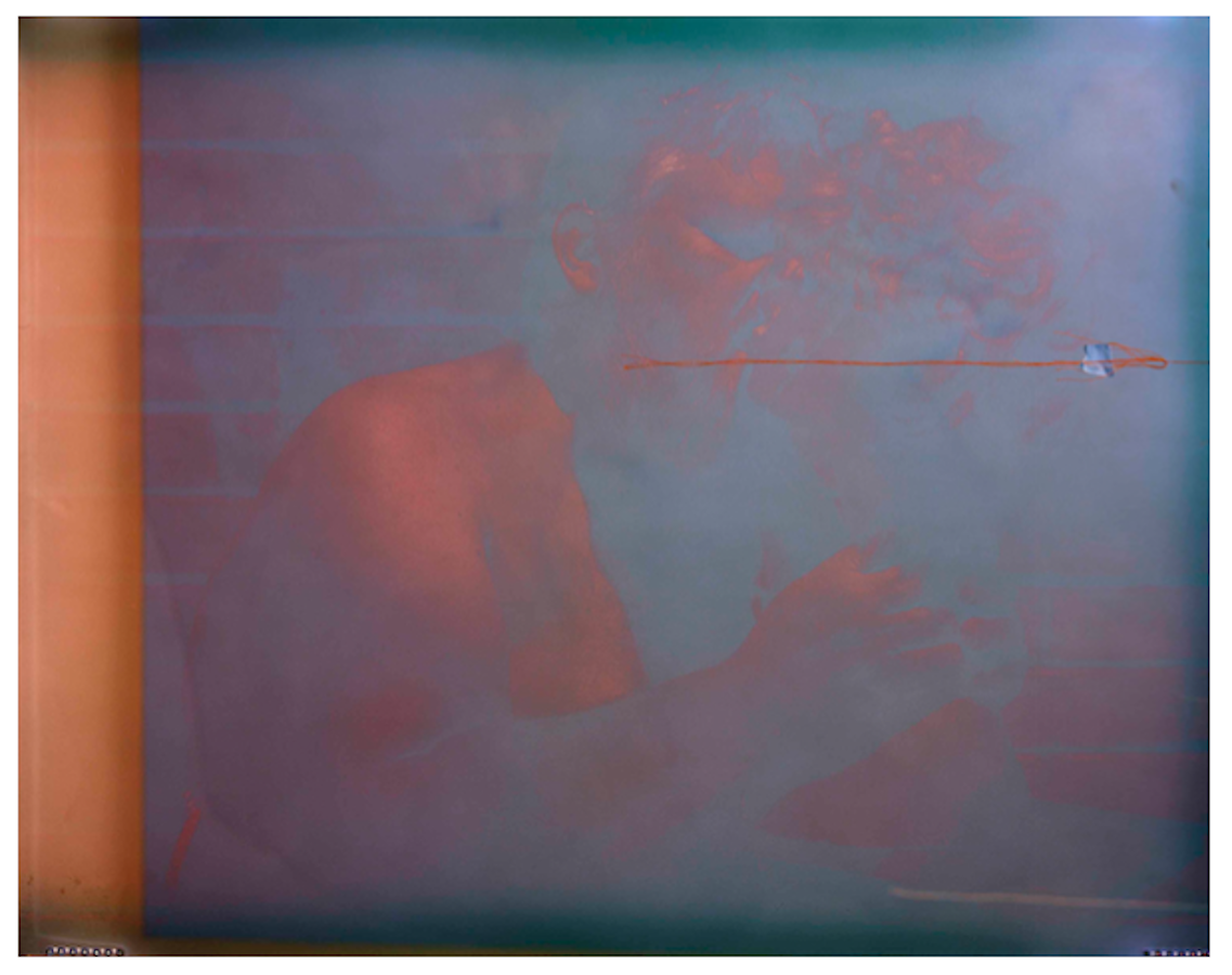 In these new works, the artist reverses her processes, merging abstract painting with her history of working with the figure in photography. Whereas Stocki’s prior exhibition comprised primarily hand-tinted black and white photographs, the color prints in Hoar Frost integrate painting within the process of photographing. Gestural mark making appears in the images, uniting various elements of performance, installation and documentation.
