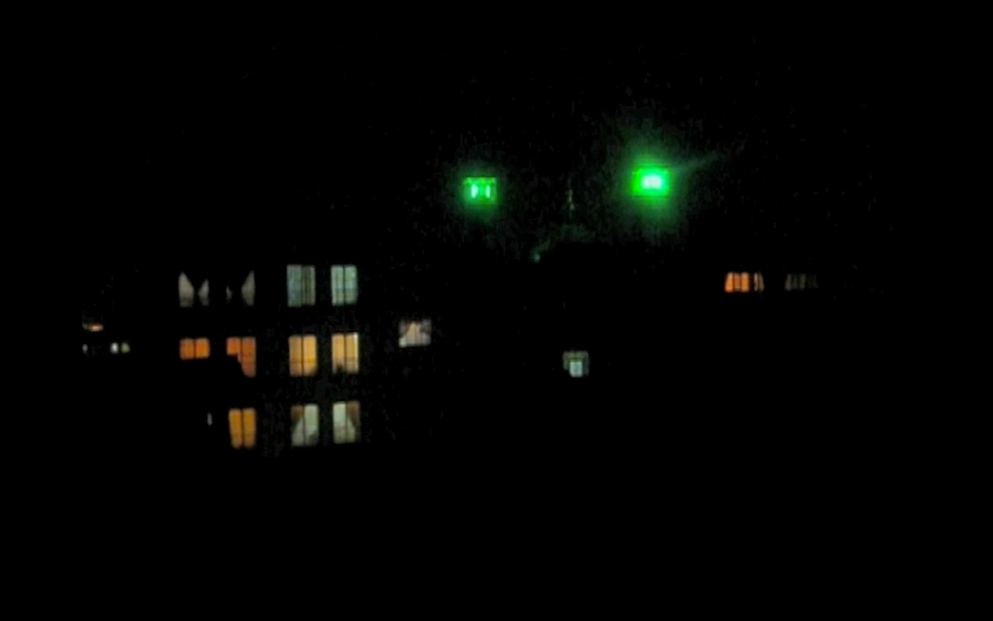 Arash-Fayez: Allah'o Akbar, 2009. Video, 3:48 min, image courtesy the artist and OtherIS. The video has been recorded in Tehran during the days after the contested presidential elections in 2009 — people in the neighborhood tirelessly call out Allah'o Akbar from their roofs, their voices reverberate through the night as the bright lights from the nearby mosque change from black-and-white to green, through history, from 1979 to 2009. Arash-Fayez: Allah'o Akbar, 2009. Video, 3:48 min, image courtesy the artist and OtherIS.