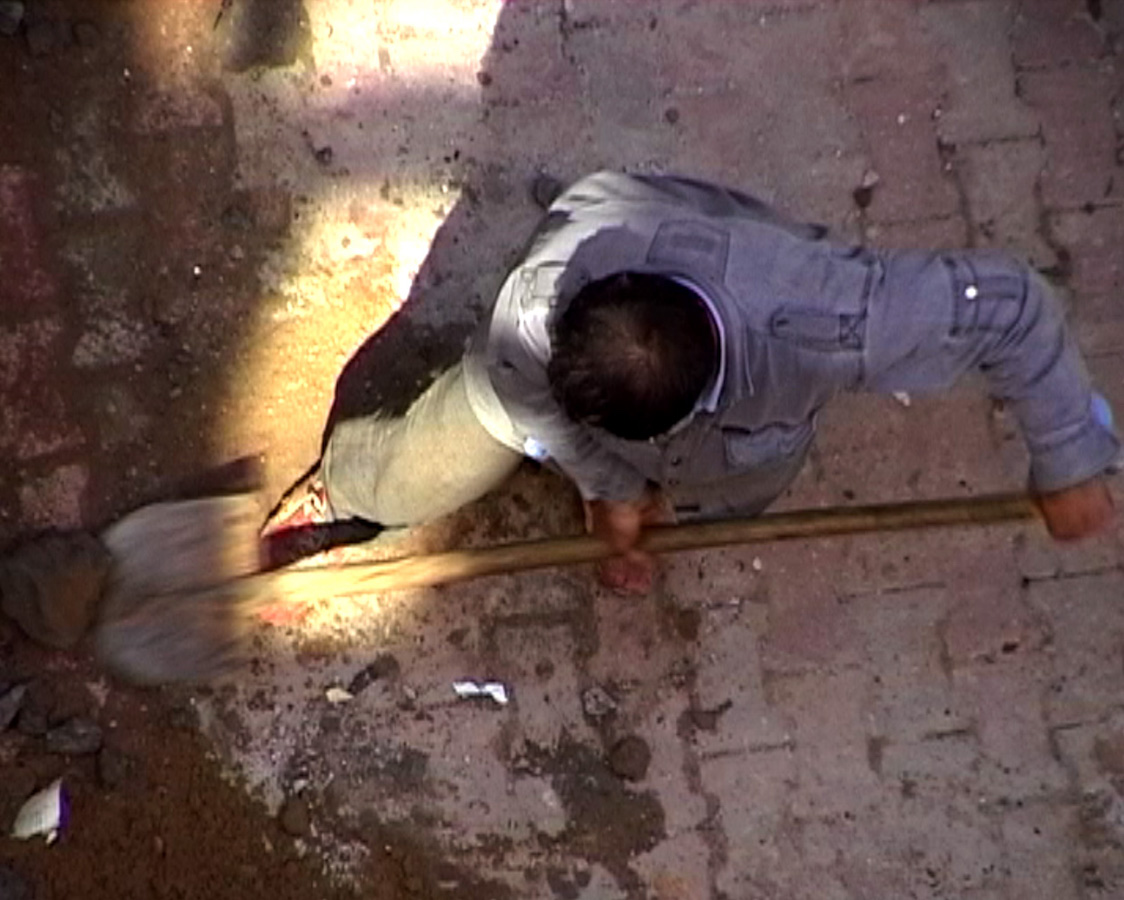 Farhad Kalantary: The Day of Removal, 2010. Video, 6:00 min, image courtesy the artist and OtherIS. Farhad Kalantary works with film and video installations in a structural mode where imaging approaches abstraction. With a cultural insight gained through empathy, his works move freely between different cultural paradigms — he is of Azerbaijani-Iranian origin, educated in the US, and now lives in Norway. His films and videos explore spaces of living, work, and transit, often via the tension between sound and image that conveys the crisis of time and space, the anxiety of speed, the instabilities of vision, and the inherent violence of spaces that appear mundane. In The Day of Removal, a part of a trilogy entitled Trails of Water Behind a Passing Boat, we see three men working with jackhammers. The sequence is first slowed down, then it speeds up gradually as sequences are shortened by a steady removal of frames. An extensive presentation of Kalantary’s work is currently on view at Stenersen Museum, Oslo, in a video installation entitled The New Beginning, comprised of twenty distinct filmic segments. Kalantary is also an independent curator, and leads the artists-run space Atopia in Oslo. Farhad Kalantary: The Day of Removal, 2010. Video, 6:00 min, image courtesy the artist and OtherIS.