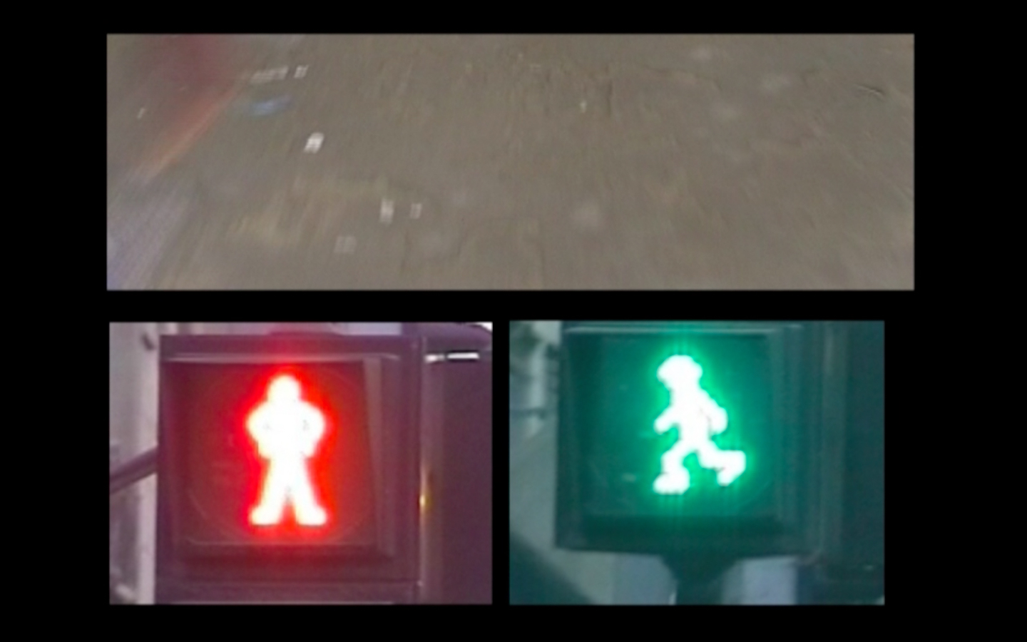 In his performative video project entitled Running Man, ongoing since 1991, Mirak Jamal tells a story of a life that runs through many places, but in the same pace of a Running Man dance routine, first recorded with a group of children at the basement community center in Cologne, Germany, in 1991. Since then, Jamal has been performing these dance steps at various sites over the years — in 2011, he created episodes of Running Man in front of the Marx and Engels monument in Berlin; on a boat in Amsterdam; and near his parents’ home in Toronto. The artist notes his realization of “how emphasized small gestures become in a setting of monotonous repetition. And how at times the narcissism of the “I” gets coincidentally reversed into a secondary role through accidental interplays of the background. I wish to embellish in the project at large the dissolution, through repetition and misplacement, of a symbolic act and embody a singular dimension comprised of a past/present/future.”