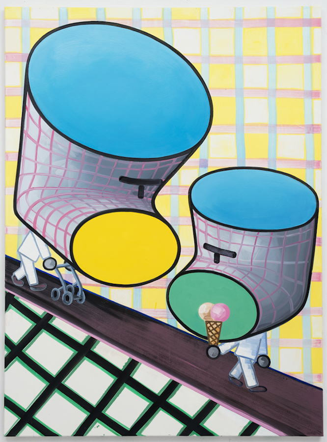 Thomas Erben is excited to present C&A, the gallery’s second exhibition with Berlin-based painter Marcus Weber. Presented here in their entirety for the first time, C&A collects Weber’s series of 14 pedestrian scenes, each of them frozen amid gridded and abstract painterly spaces. Evoking the work’s multiple layers of references, C&A refers to a German-Dutch chain of fashion stores (a stand-in for mass consumer culture), though it may also refer to the titles of his canvases and the titular characters populating them. Of the series, which was begun in 2013 and completed in 2018/19, only Jacques (2013) had been previously exhibited, when it was included in the Sanya Kantarovsky curated group show Sputterances, at Metro Pictures (2017).