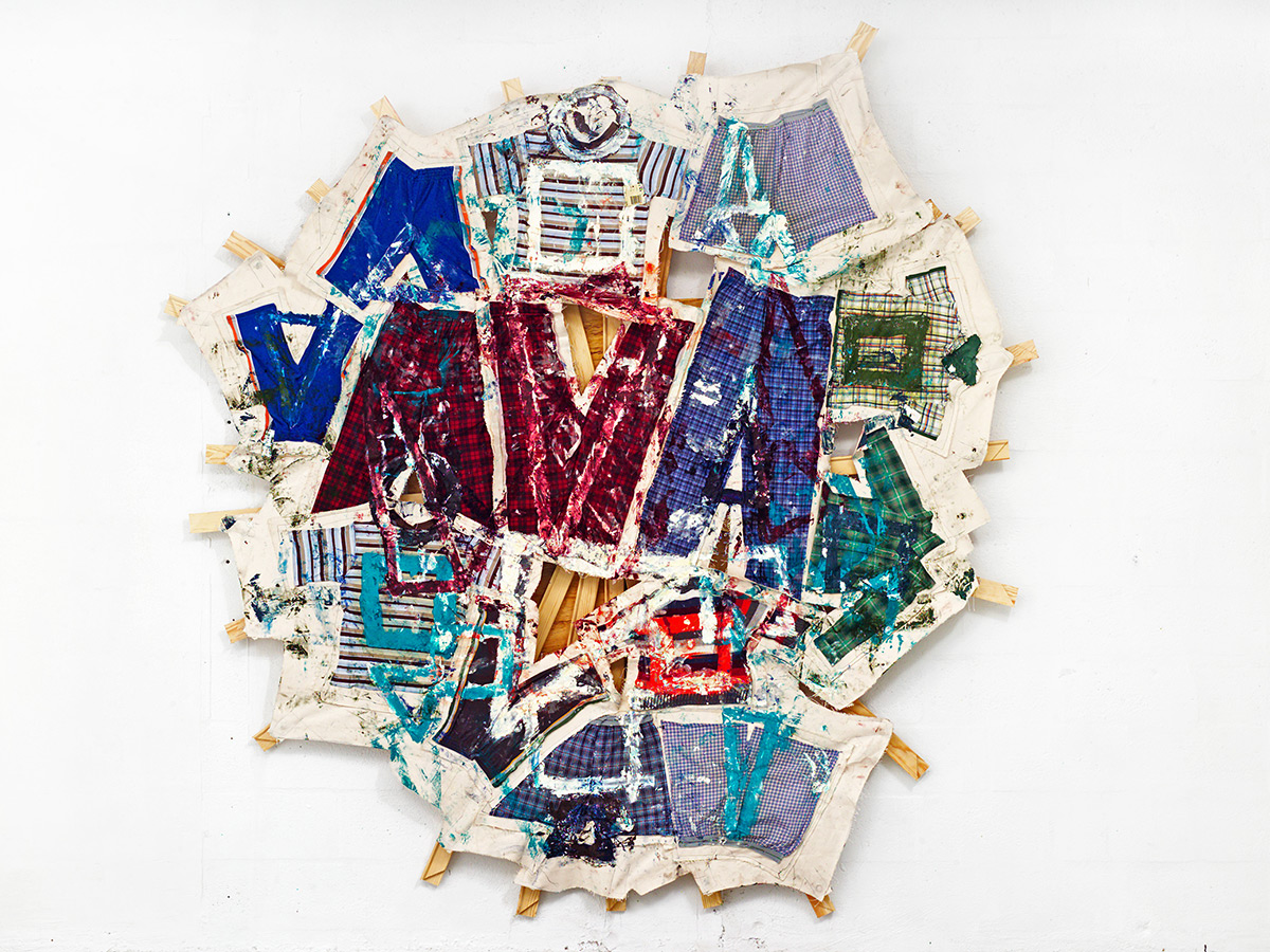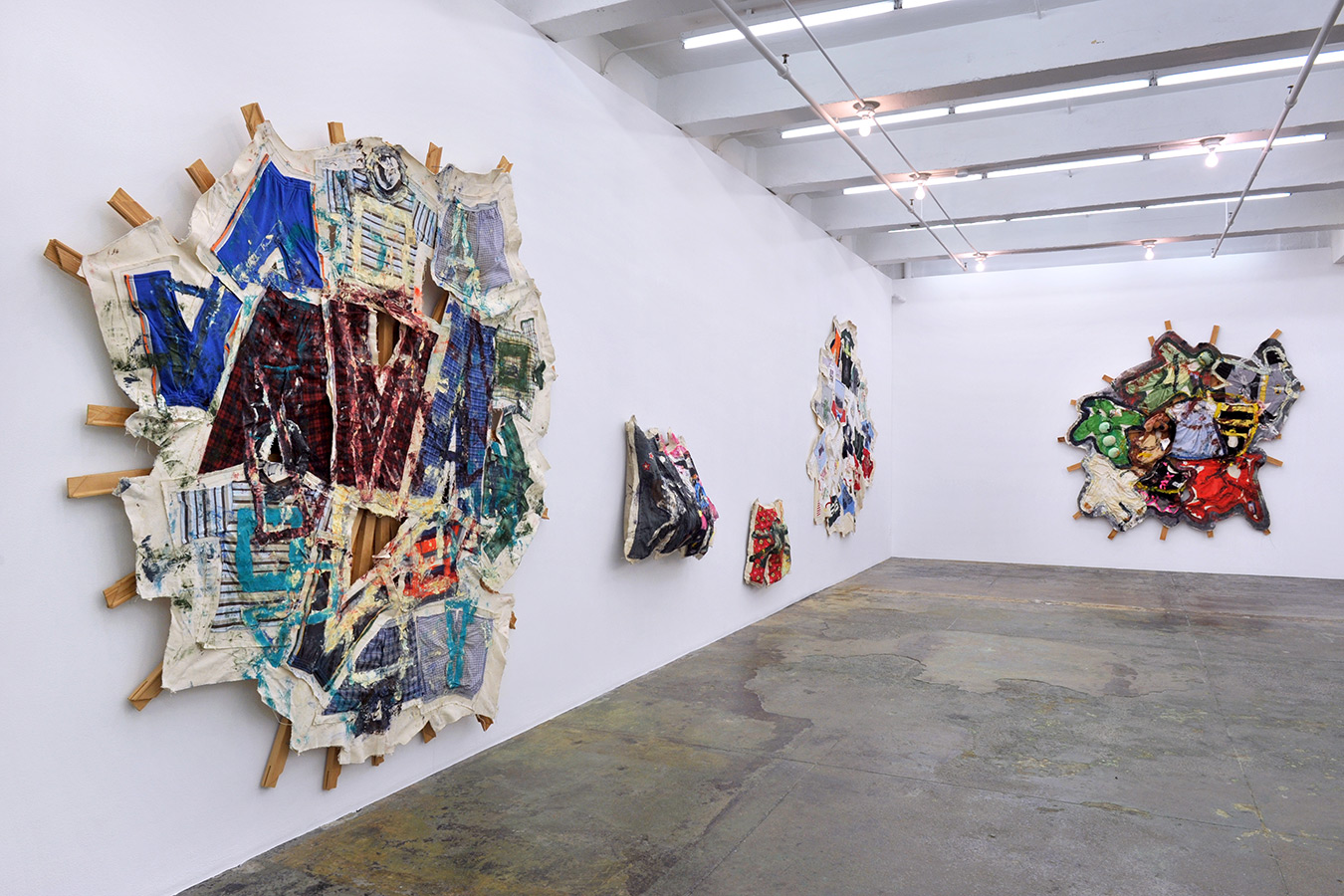 Thomas Erben Gallery is excited to bring together Mike Cloud’s formative painted-clothing series from 2007 and 2008, a period in which the artist incisively foregrounded printmaking and collage strategies—incorporating children’s clothing, mark making by transference, and unusually arranged stretchers. The show marks the first time that these works will be exhibited side-by-side (they were previously shown at Miami’s Center for Visual Communication during Art Basel and Max Protetch Gallery in New York), uniting a playful, deliberate and exposed, multivalent body of work.