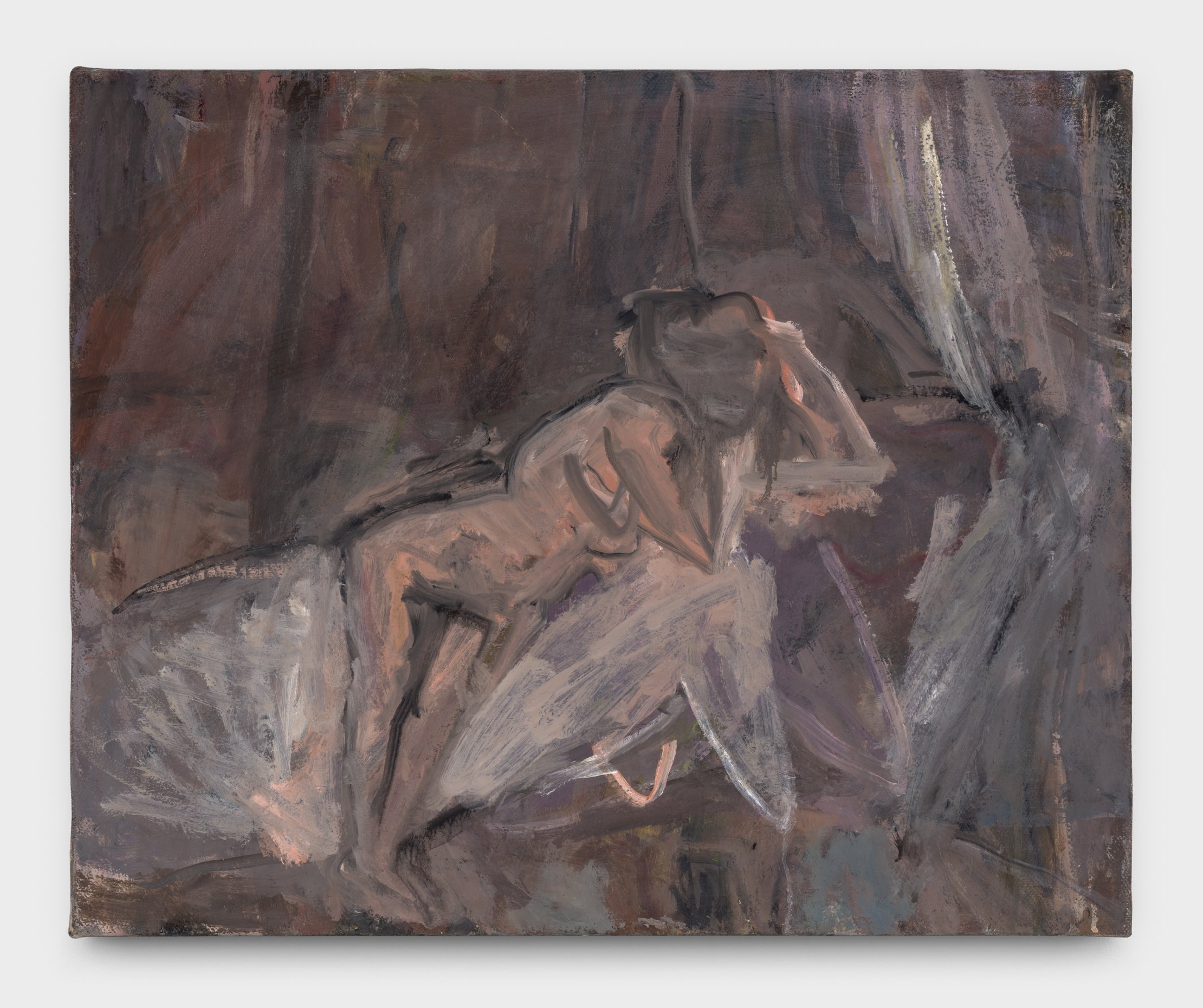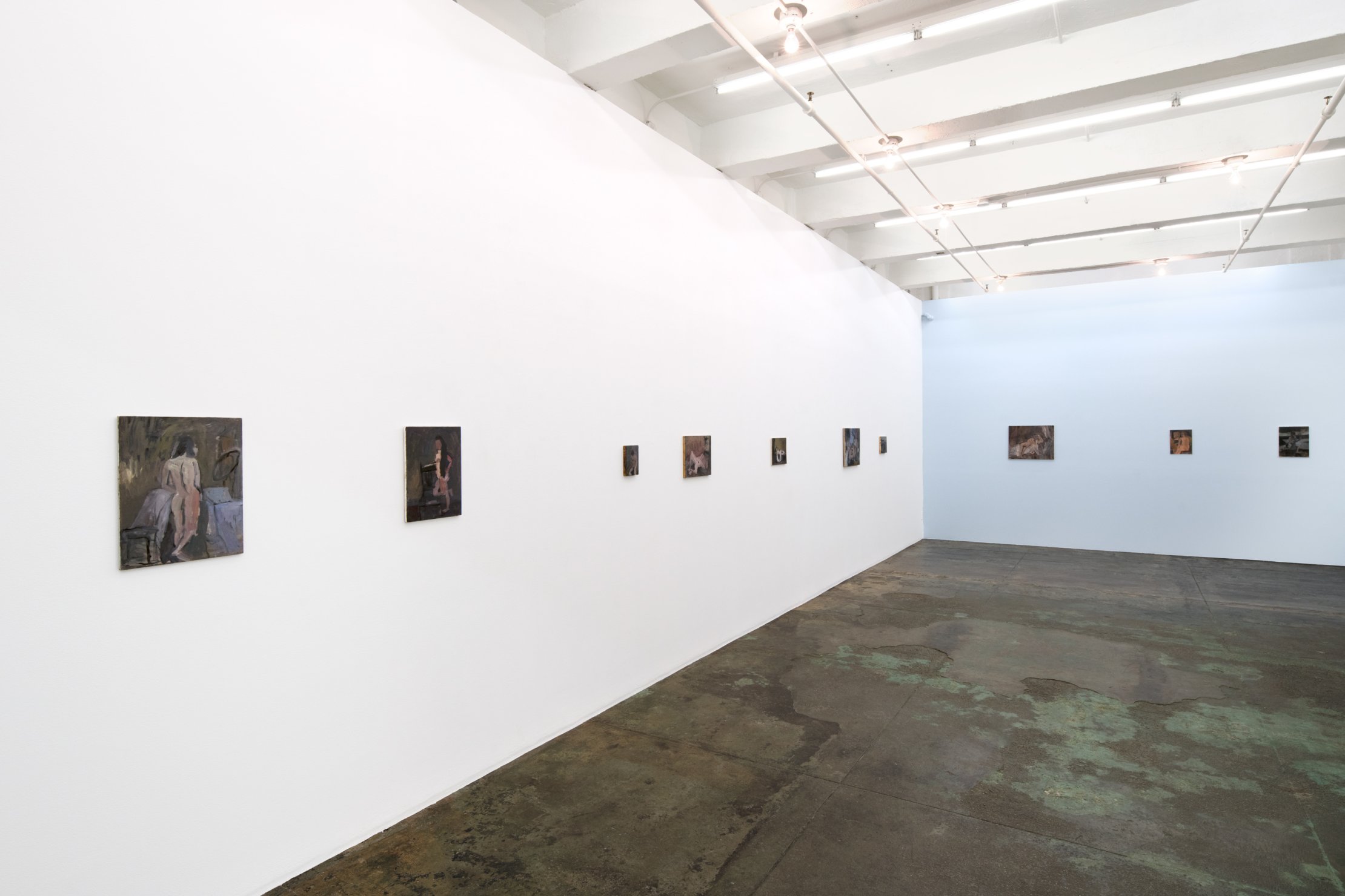 Using 19th century postcards of female nudes in erotic poses or occasionally canonical paintings as compositional devices, it is Nowinski’s process that transforms these tropes – without denying the artist’s deep engagement with painting’s history – in a freshly contemporaneous way. Though her paintings may be modest and often surprisingly small in scale, it is the concentration, conceptual clarity and time invested that imbues them with a presence far greater than their physical size.