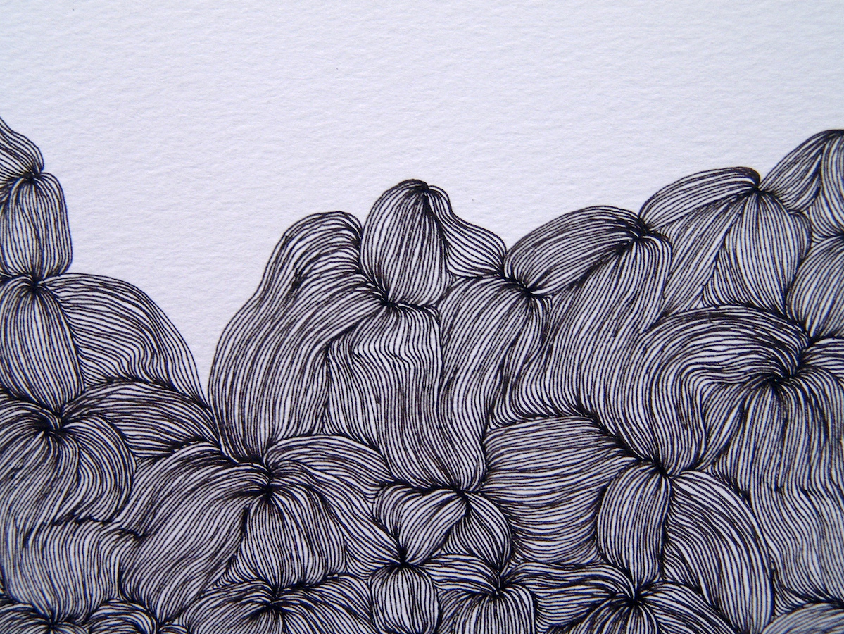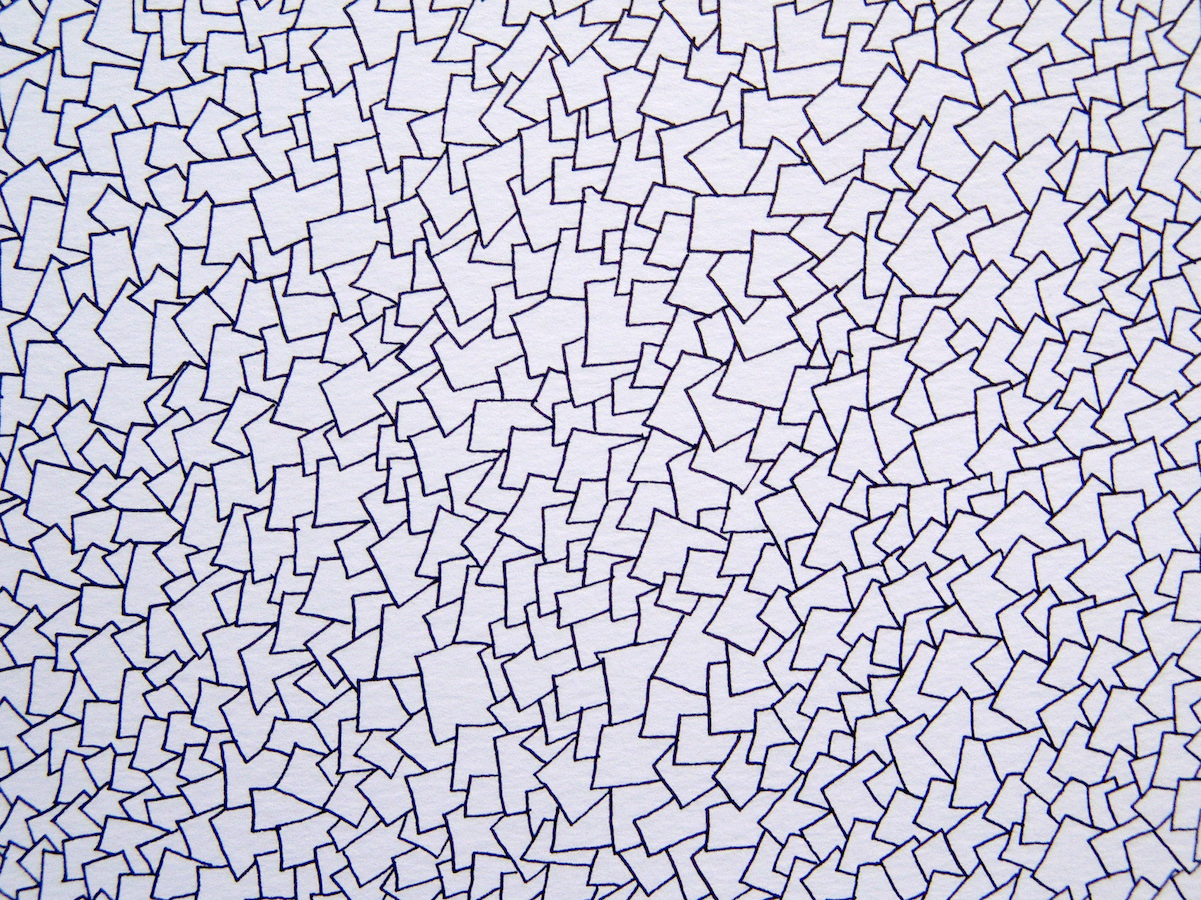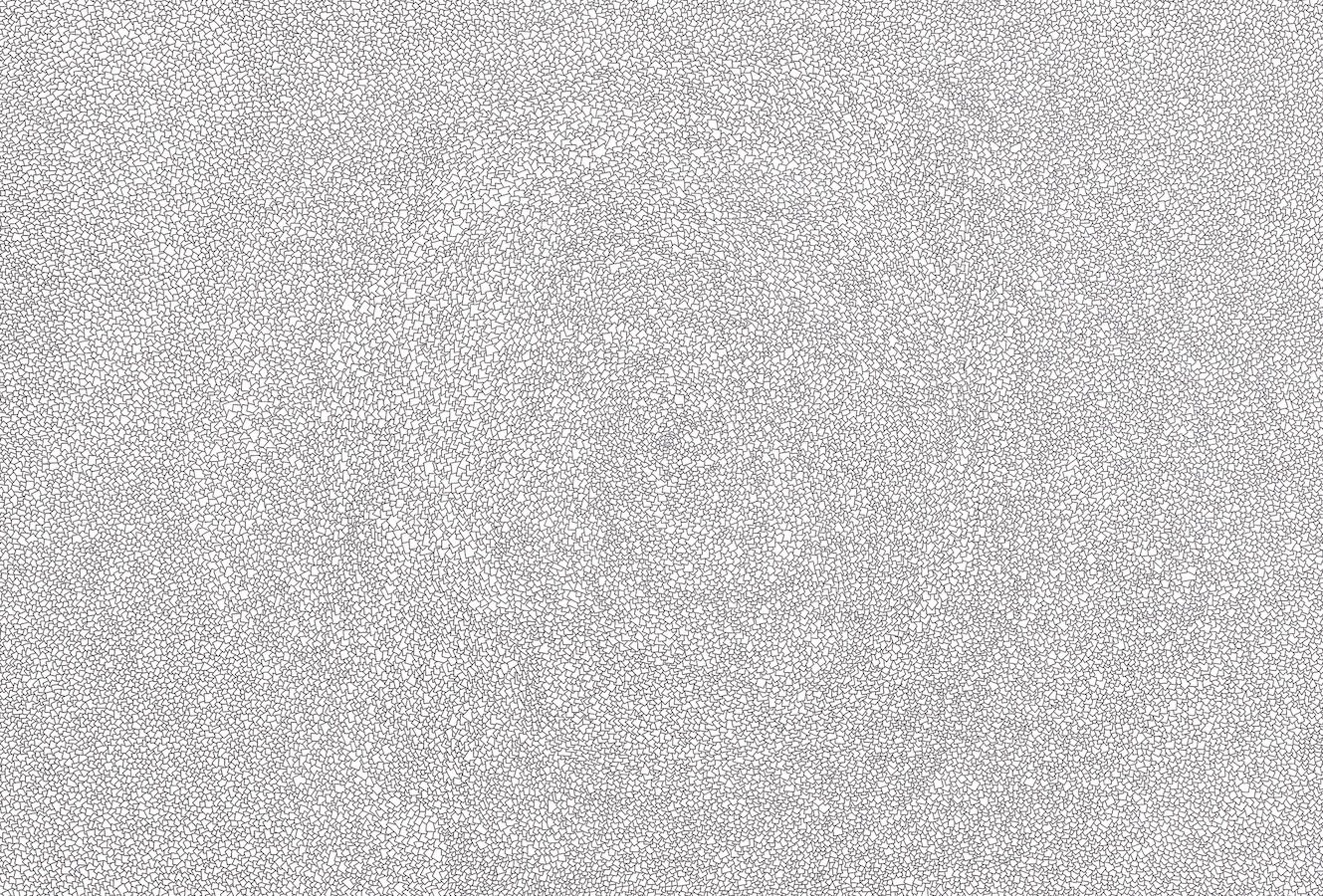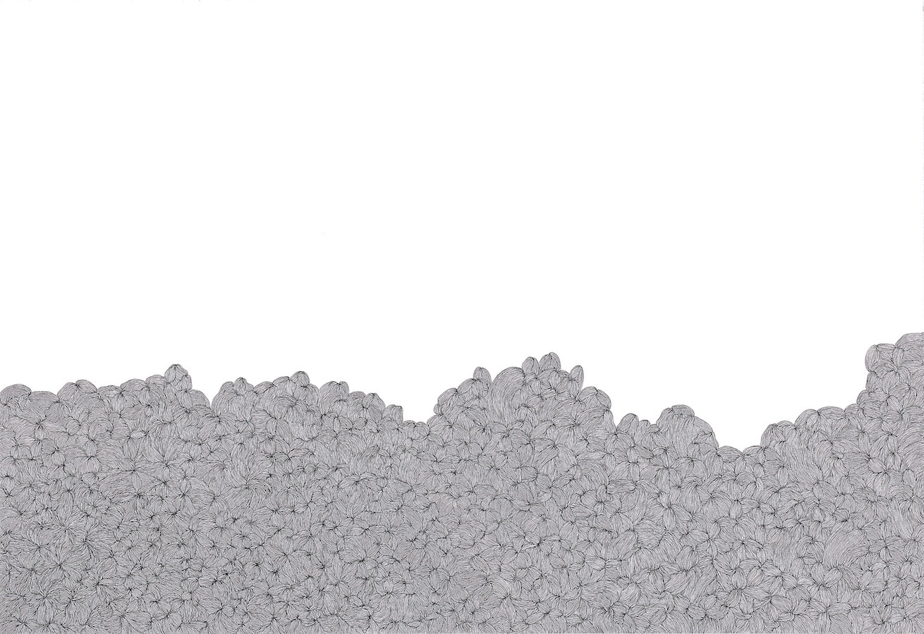 Khawaja executes her black felt-tip pen drawings on often large-scale (up to 8’ x 5’) sheets of paper. Part daily routine, part meditation, her work appears to sublimate interior as well as exterior conditions, growing increments of small details into sometimes full-blown fields, sometimes unifying structures. Drawn by hand with a high degree of precision, her lines take on angular, organic or loopy vectors, shaping into swirls, grids or geometry. It is important for Khawaja to enter into a certain rhythm, leaving behind rationality, and to create a space rather than an image, a vision more than an idea, a human capacity rather than a human story.