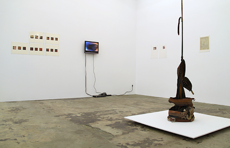 Seema Nusrat, Collapsing-Rising, 2009. Leather belts, 18 x 18 x 125 in. Seema Nusrat, Collapsing-Rising, 2009. Leather belts, 18 x 18 x 125 in.
