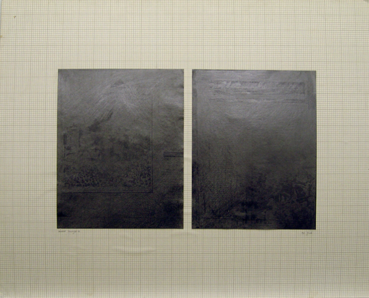 Lala Rukh, Mirror Image #2, 1997. Graphite over newsprint collaged onto graph paper, 19 x 24 in. Lala Rukh, Mirror Image #2, 1997. Graphite over newsprint collaged onto graph paper, 19 x 24 in.