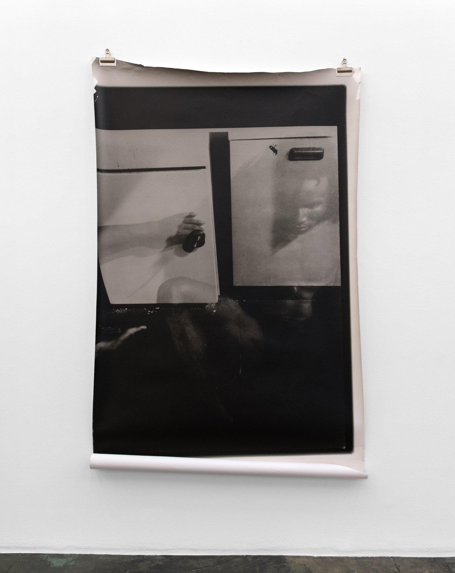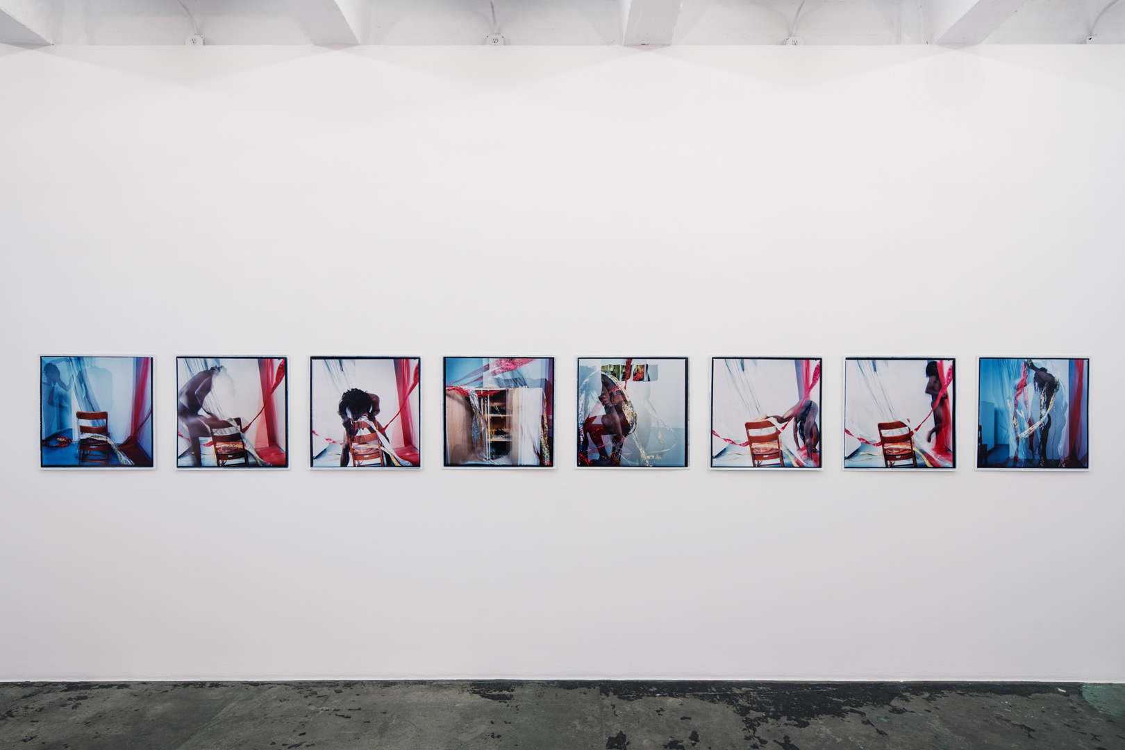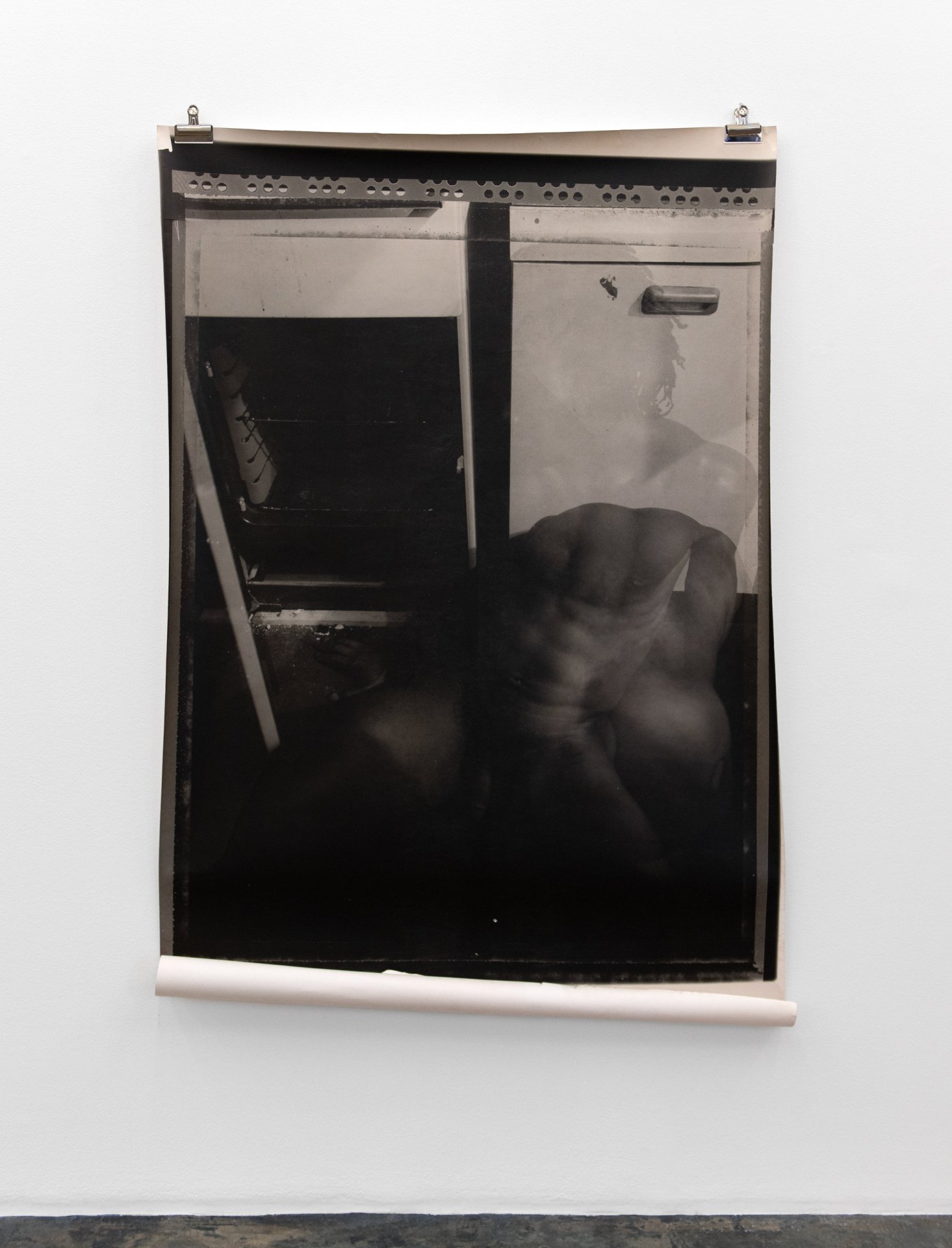 The exhibition is organized around three distinct yet interrelated bodies of work. A group of seven, large scale, silver gelatin photographs collectively titled Defining Self Sufficiency (1993) portrays the artist in his Glasgow kitchen. Unprecedented within the history of African self-portraiture, Bamgboyé comfortably photographs himself in the nude, multiple times present in his images with the use of overlayed exposures. Surrounded by his quotidian domesticity, the artist exudes a level of ease and content, countering our usual projections onto the “black male body”, while his manifold presence points towards a multiplicity of selves.