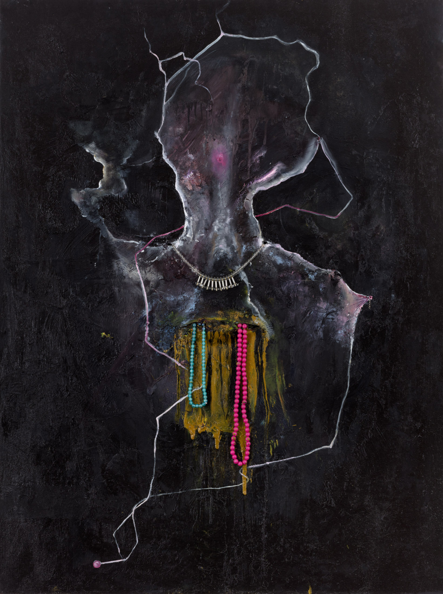 Untitled (Beads), 2008. Oil on canvas with beads, 120 x 90 cm.">