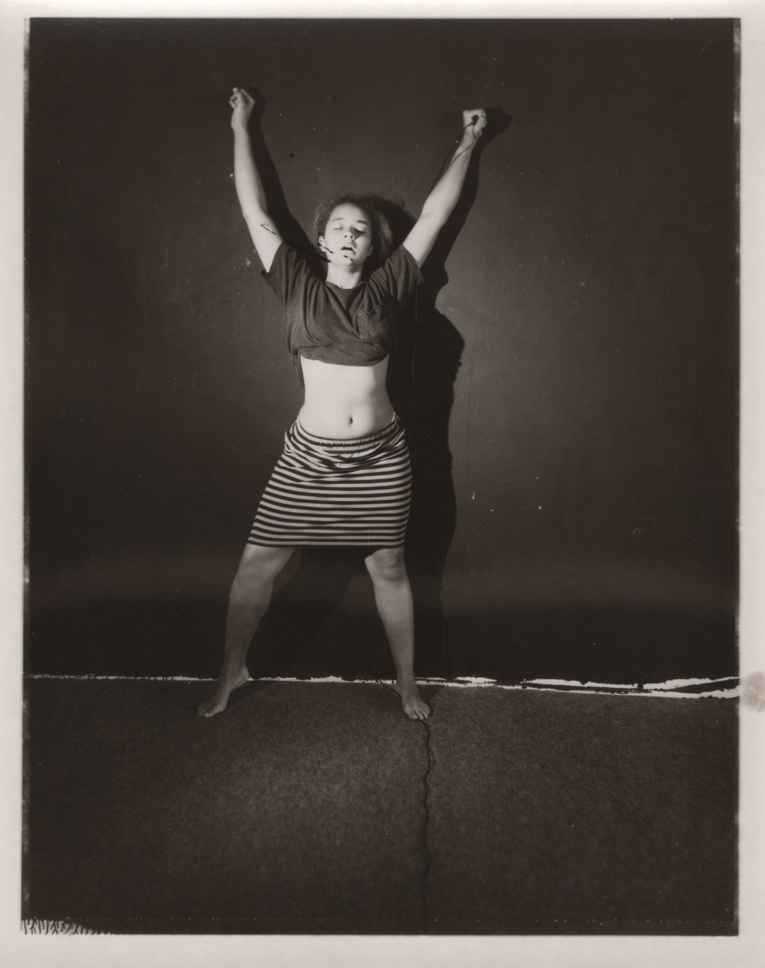 In her photographic series, Carla Williams captures these ideas. We see her dancing with herself coyly posing in the first frame, with her motion blurred in the second, and finally, her belly exposed, with an expression of triumph, eyes closed and mouth agape in the third.