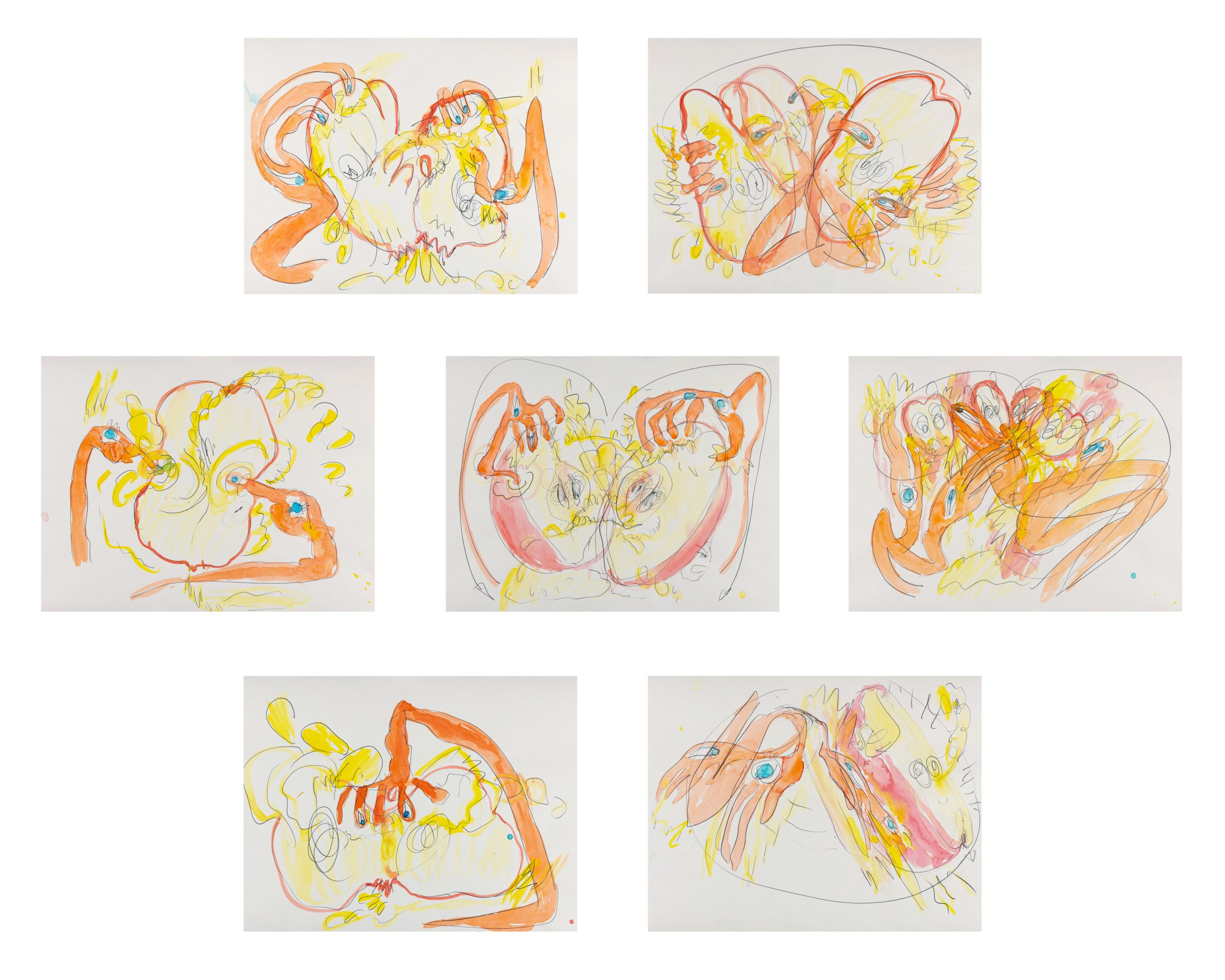 Traumatizing an Apple (1-7), 2019. Watercolor and pencil on paper, 54 x 70 cm. each">