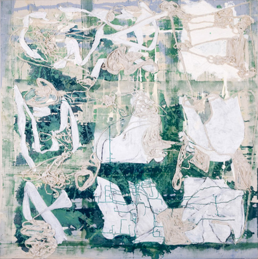 In a recent article in the New York Times [2/14], art critic Roberta Smith specifically points out Dona Nelson as one of New York’s artists who deserve much broader visibility and recognition within our city’s art institutions. We can only second this assessment by presenting the artist at the VOLTA art fair and concurrently in a group exhibition, Animate Matter (February 23 through April 3, 2010), at our gallery space in Chelsea. Thomas Erben Gallery has been committed to showing Dona Nelson’s work, who we consider one of the most intellectually and formally engaged painters of our time. Nelson keeps pushing the boundaries of her chosen medium and, thus, constantly challenges our understanding of it.