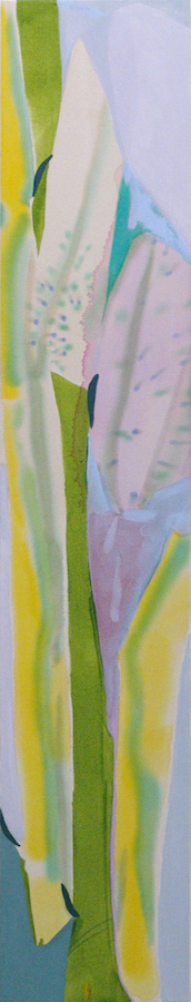 Wong’s paintings offer multiple, cumulative viewpoints – gazing into reflections in water, looking over hills at clouds, or walking through woods – which are absorbed into a continuum of movement of shapes, colors and forms. Her variety of marks – such as broad, watery washes; frequently calligraphic lines; and small, short dashes or dots – fuse into organic, idiosyncratic compositions, which are highly sensitive to the edges of the canvas. A primarily soft and bright palette contributes to an ephemeral atmosphere of colliding forces and fluidity.