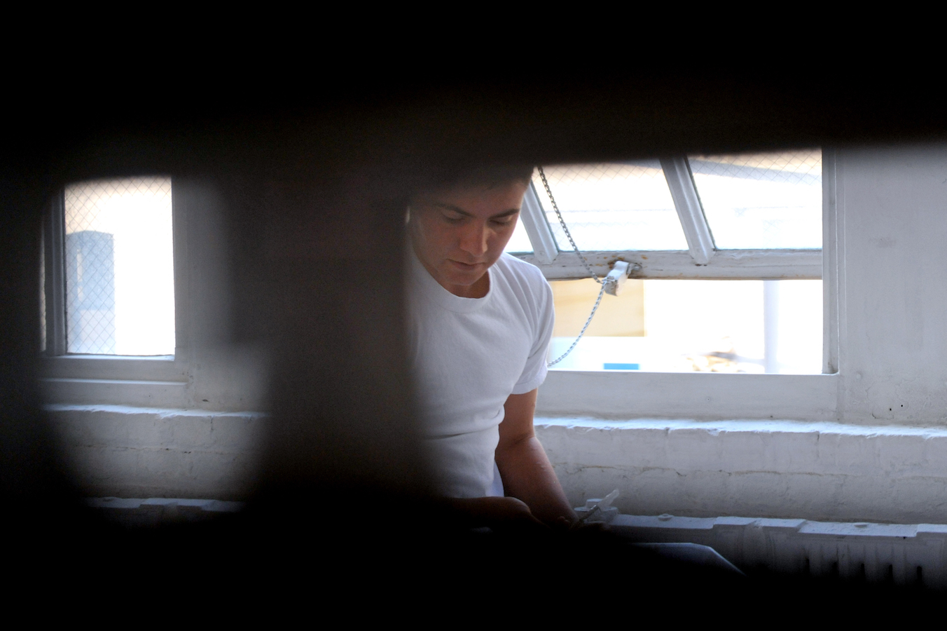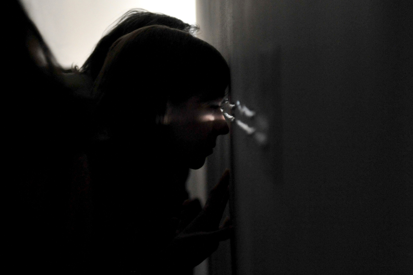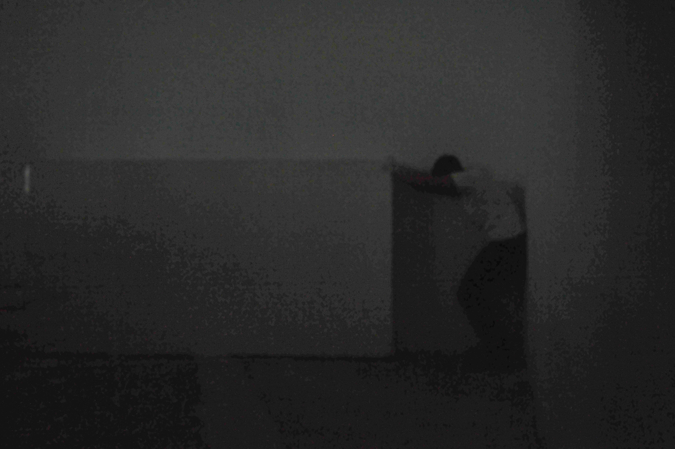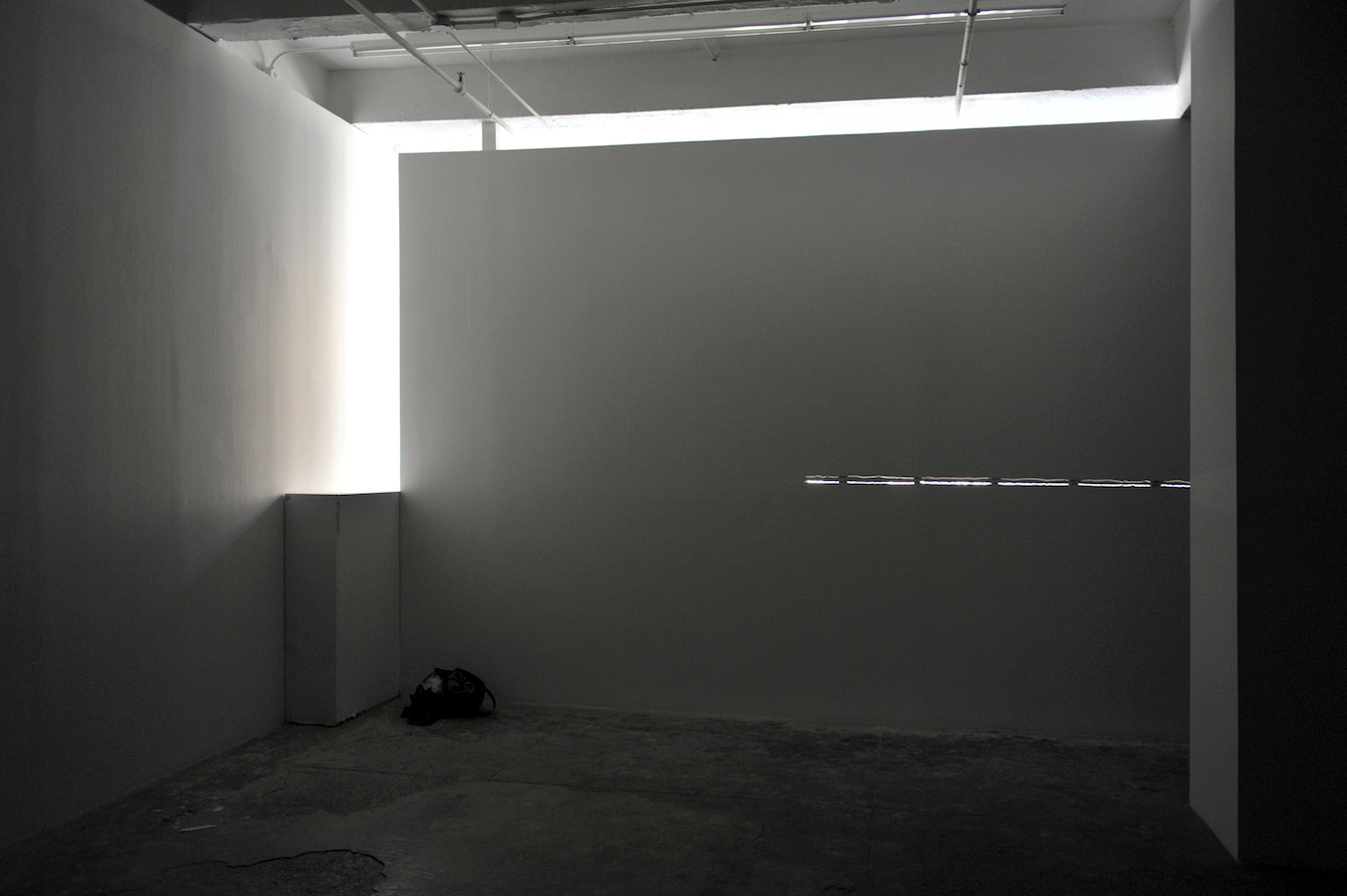 In the darkened gallery, the audience first observes the artist in a walled-off area, by way of a limited access view through a horizontal slit cut into the wall. The wall-mounted sprung dance floor from Coda, which Laris Cohen presented recently at SculptureCenter, is stacked horizontally in a corner. A slab of white wall blocks the enclosed area in which he prepares the surface of an identical second one, a process involving an extended sequence of ballet jumps. One of the walls makes a journey along the perimeter of the gallery, leaving scratch marks that – together with other accumulating residue – create the exhibition. The organization of each performance varies slightly, reflecting Waltz;’s three discrete titles.