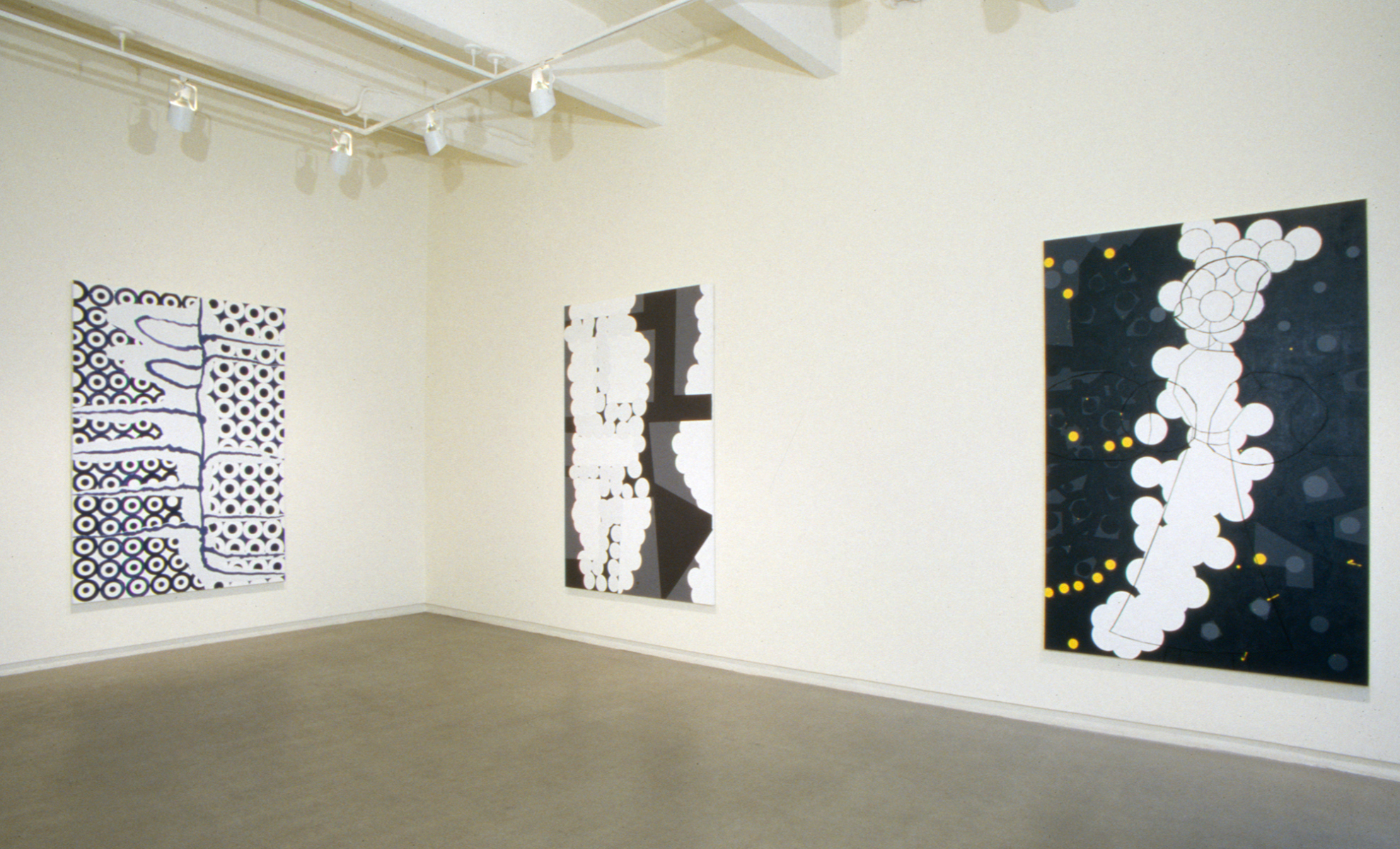Nelson believes the large, calculated paintings striving for a signature style that she so frequently saw in the early 1970s were, in part, responding to the newly renovated, grand spaces in which they were exhibited. In her desire to reflect the art ethos of that formative moment in her development and in the history of New York’s art world, Nelson assumed a cooler more measured manner of painting than has been her recent wont – without draining the juicy physicality so endemic to her work created in the last decade. The grid found in many of her Station paintings calls to both the grid of the subway system and to the Spartan geometries and procedural clarities seen in the Minimalism still dominating much of the art made in the early 1970s. However, Nelson’s grids take a trip into warping flows of paint. The circles drawn from subway wheels and from mullioned glasses embedded in many a Soho sidewalk refuse to adhere to the rigors of geometric regularity and seem to be dislocated by urban cacophonies.