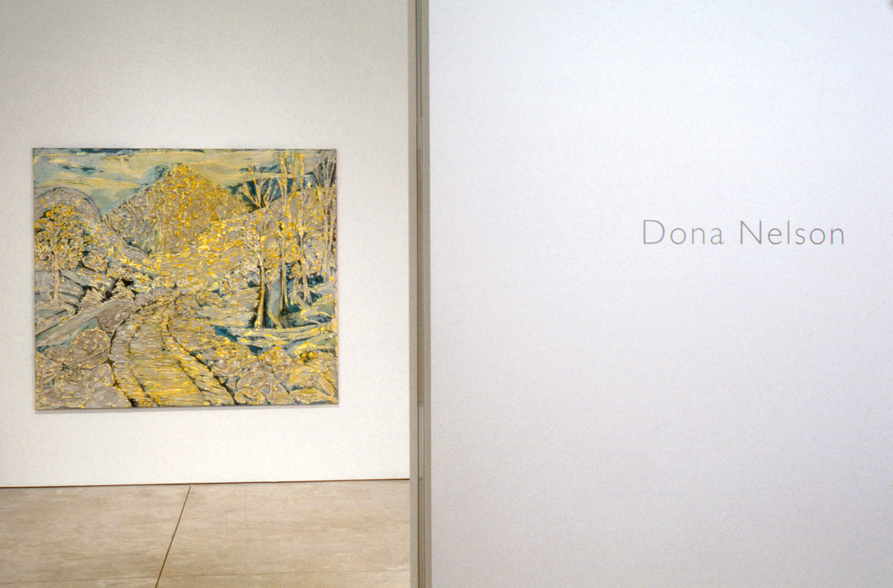 “In her twelve sequential paintings of The Stations of the Subway (1997-1998), Dona Nelson looks back through the lens of the painterliness she has so fearlessly and intelligently explored at the art she encountered in the early 1970s during the beginning of her art’s maturity. Nelson’s everyday experiences are inextricably layered into the flow of her paint’s associativeness, and her Stations call not only to the art she viewed but to the subway rides she took to and from art’s new outpost in Soho. The title, of course, refers to the Stations of the Cross, more specifically to Barnett Newman’s Stations of the the Cross (1958-1966); and, indeed, Newman’s pared down dignities exerted a strong impact on much of the art Nelson saw during her forays into Soho.