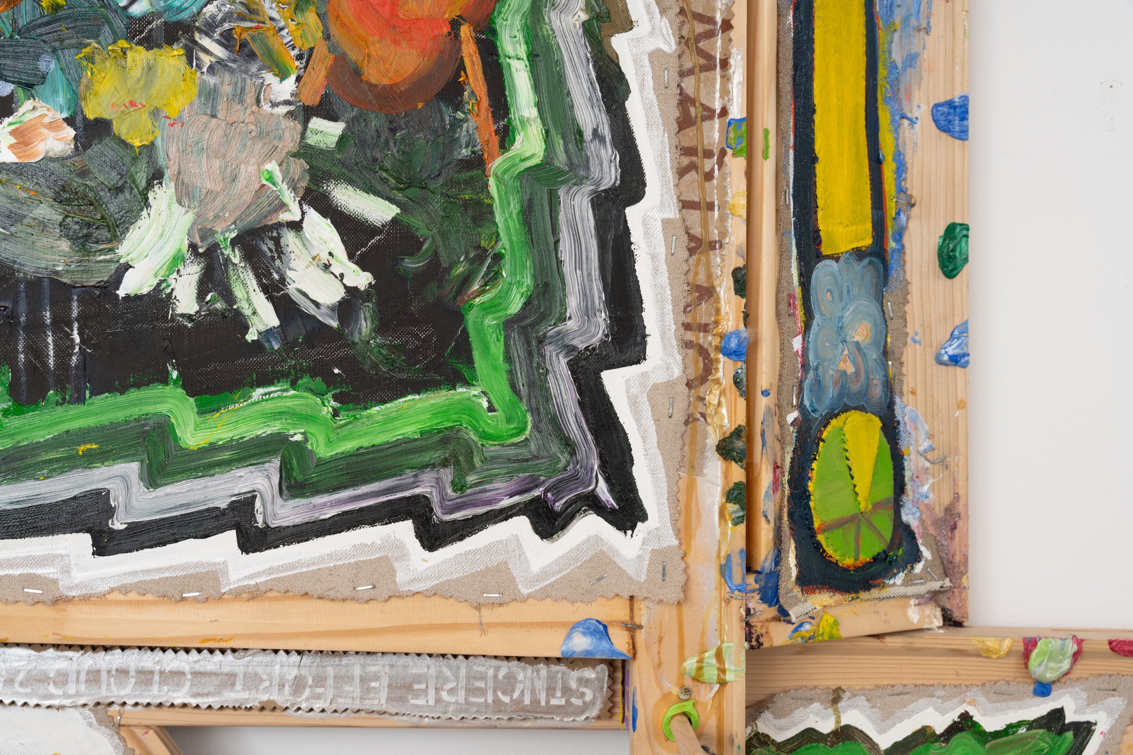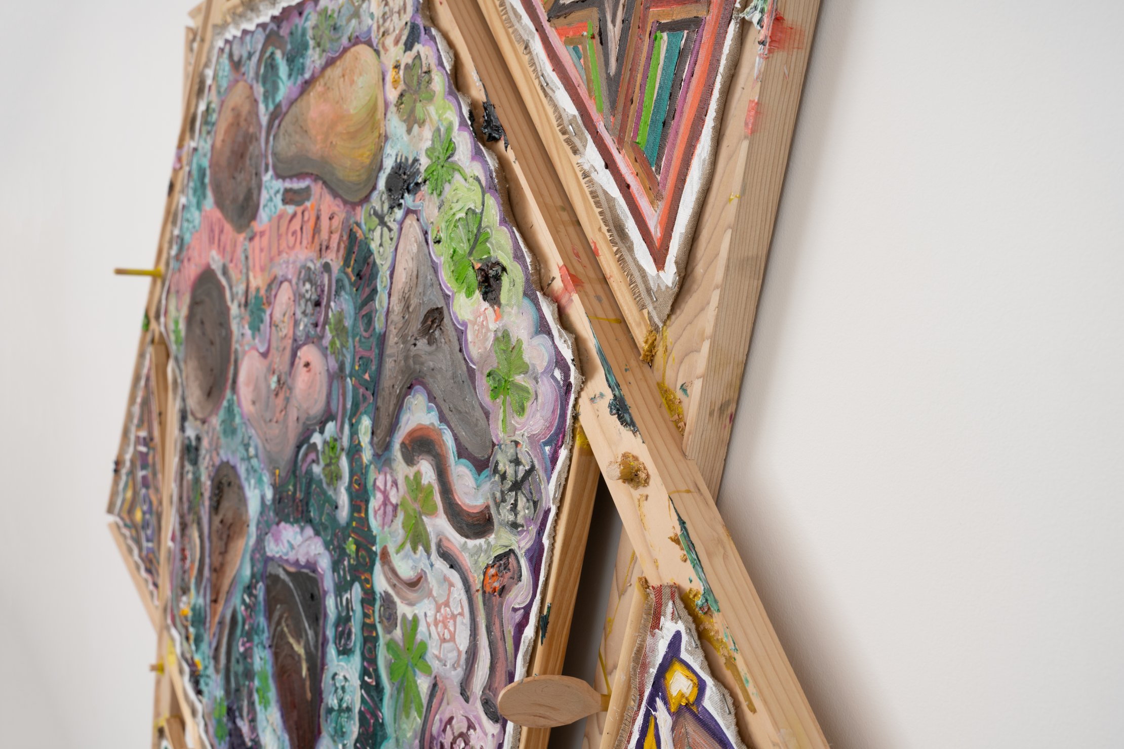 Mike Cloud, Matters of the Heart (detail), 2025, oil on canvas, 64 x 65 x 7 inches. Mike Cloud, <i>Matters of the Heart<i> (detail), 2025, oil on canvas, 64 x 65 x 7 inches.