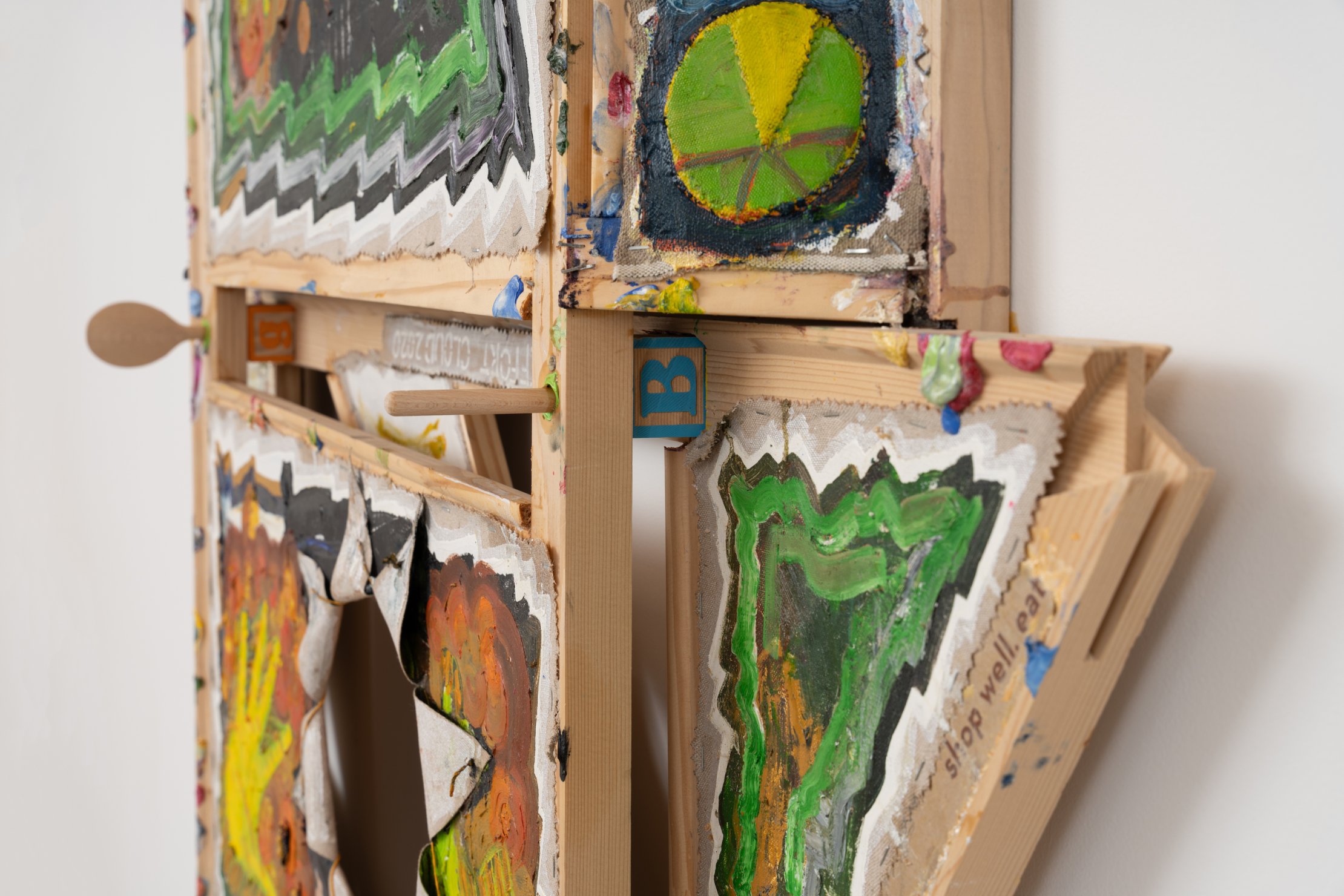 Mike Cloud, Oyster Oil (detail), 2025, oil on canvas, 36 x 48 x 30 inches (folded). Mike Cloud, <i>Oyster Oil</i> (detail), 2025, oil on canvas, 36 x 48 x 30 inches (folded).